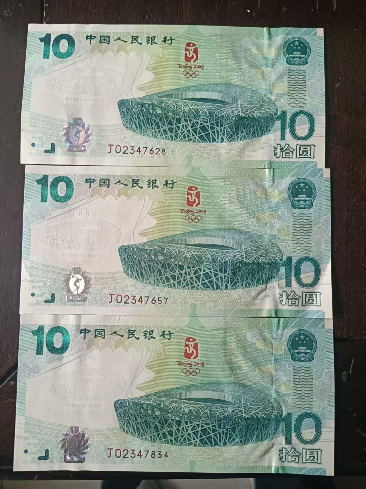 奥运钞轻微软折,尾4的 1820