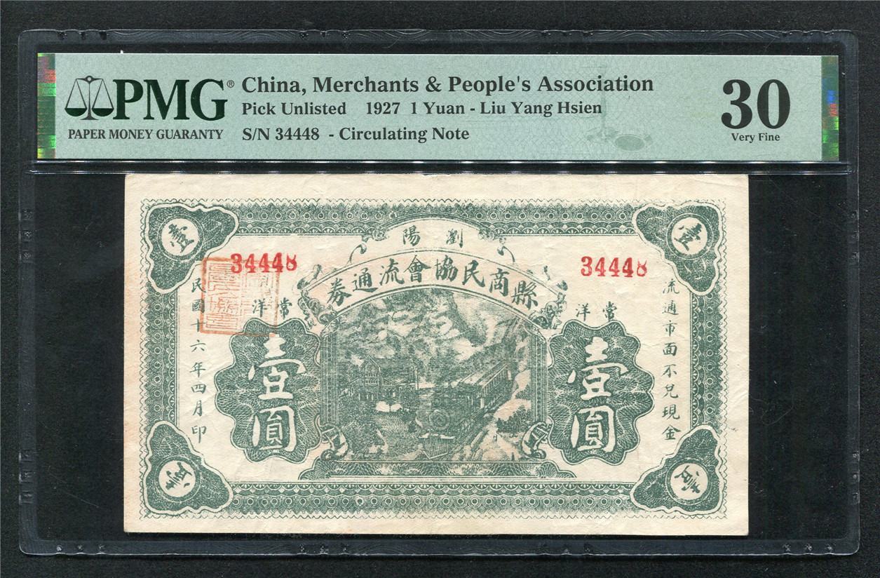 售民国十六年 浏阳县商民協会流通券 壹圆 PMG30