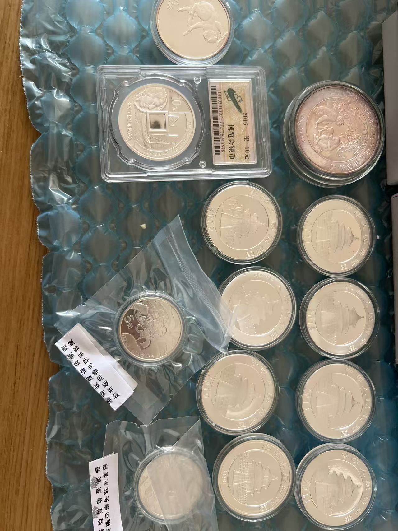 1盎司银猫8枚共248.8克,生肖钱博各1枚60克,电*影2枚30克,银章50克,共388.8克,克价23