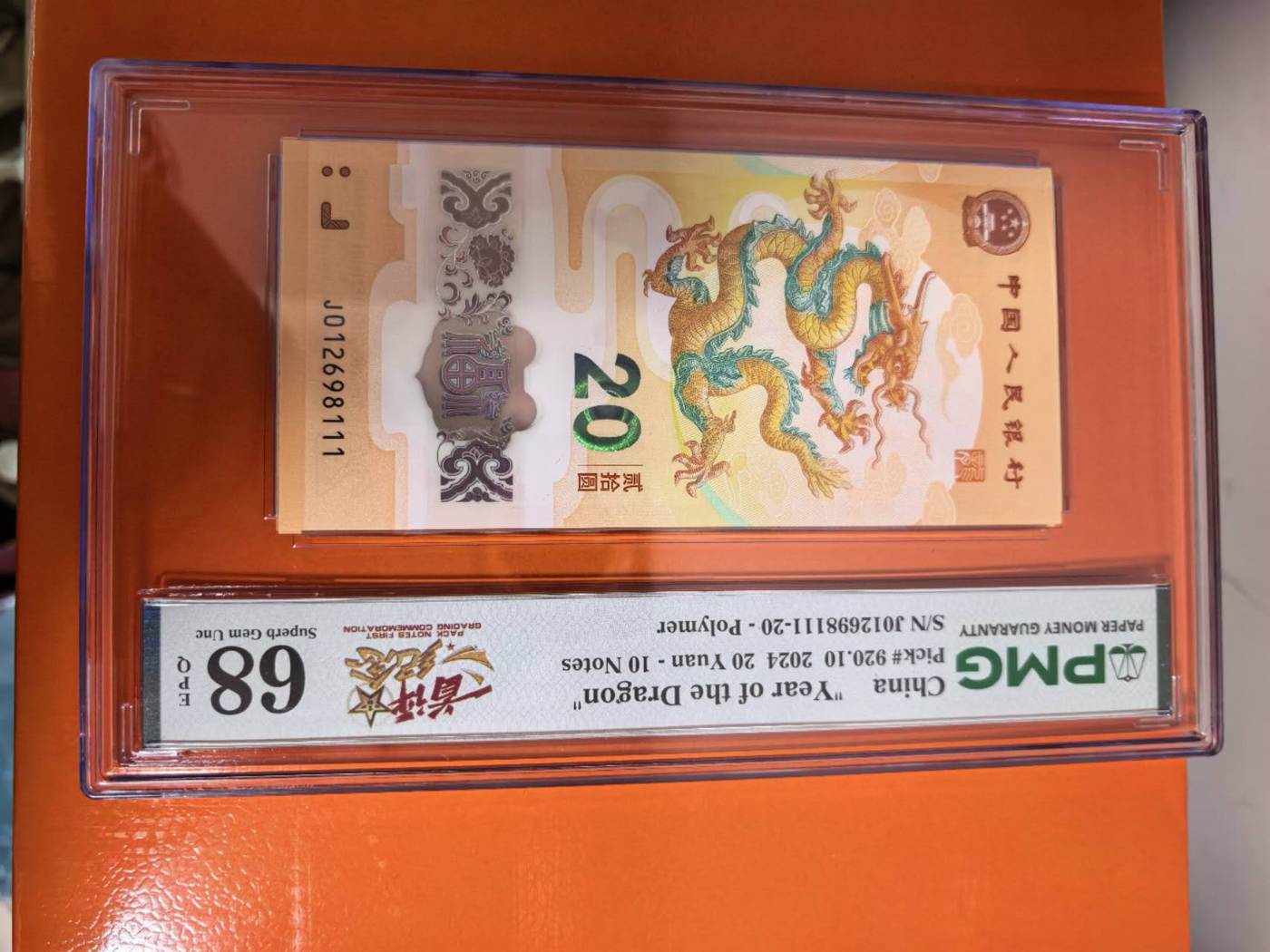 如题出小龙钞朦胧豹子111号标十一组,,PMG68分,银行一手货源,价格12800元。