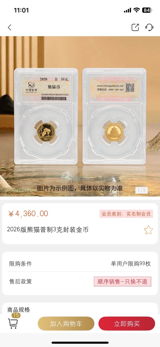 → 出封装3克金猫2枚