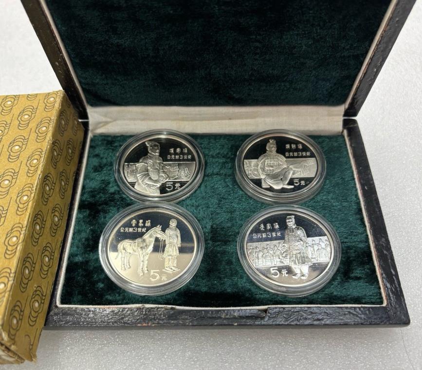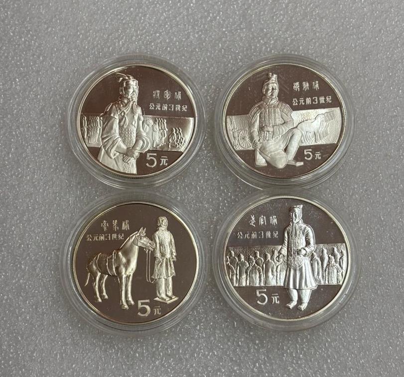 重量22克,成色90%,早期老精稀,实铸量只有17000套左右,分别是跪射俑,武官俑,牵马俑和将军俑,带原盒子,无证书,龙头品种,配套的不要错过,价格3200元,价格波动,电联确认!