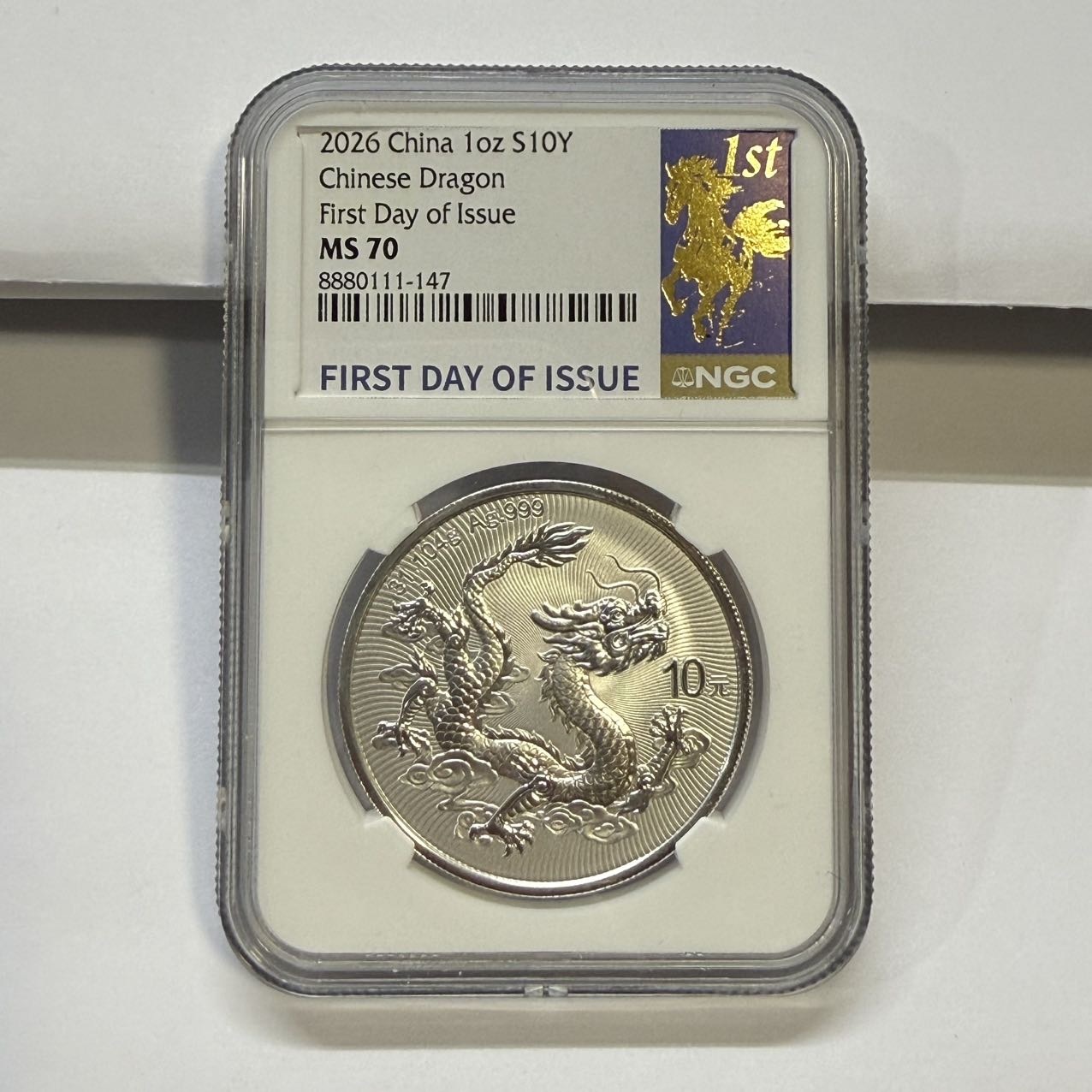 → 出26年香港NGC首日70分马年特色标签 中国龙银币,开桶中国龙