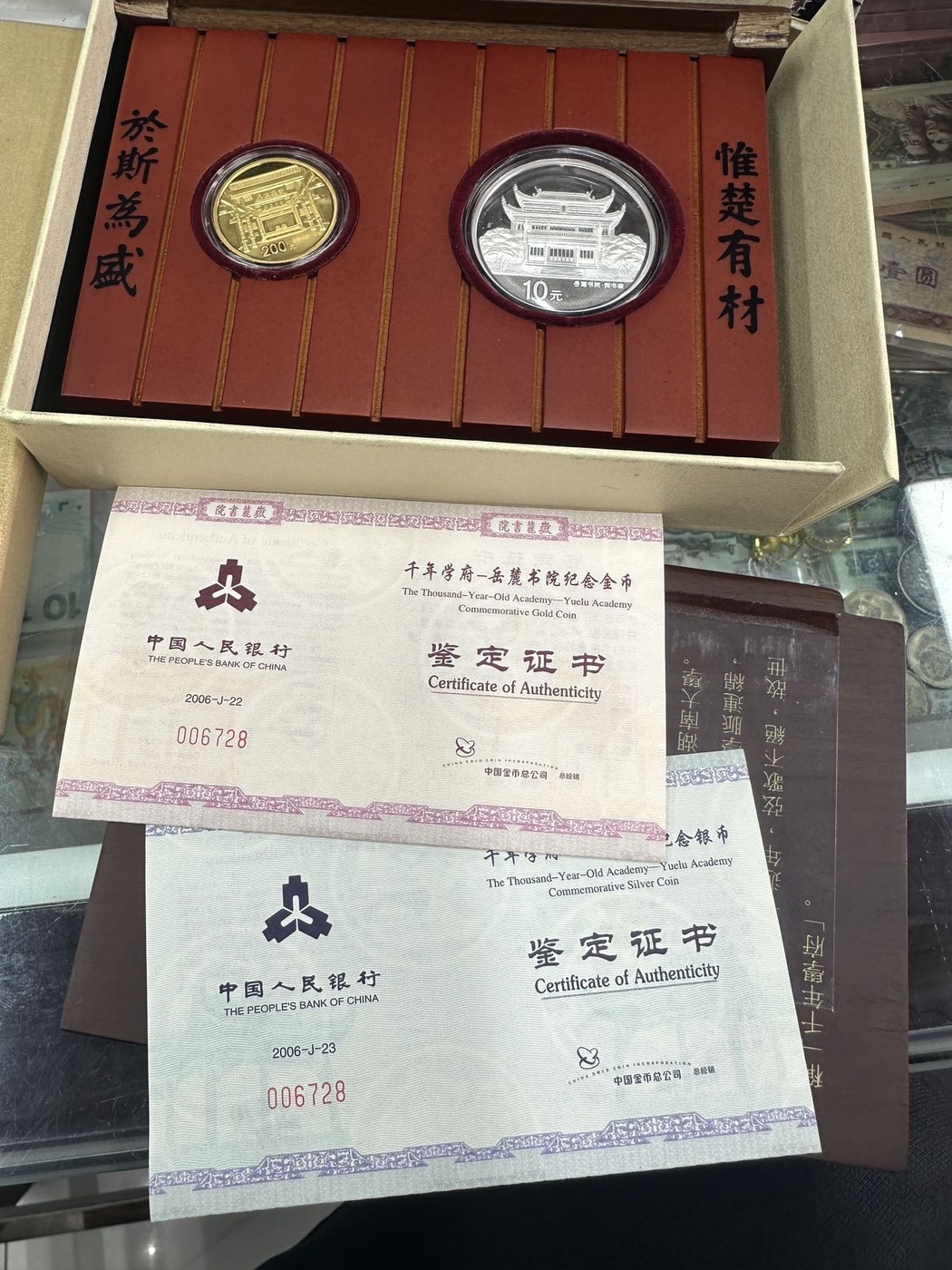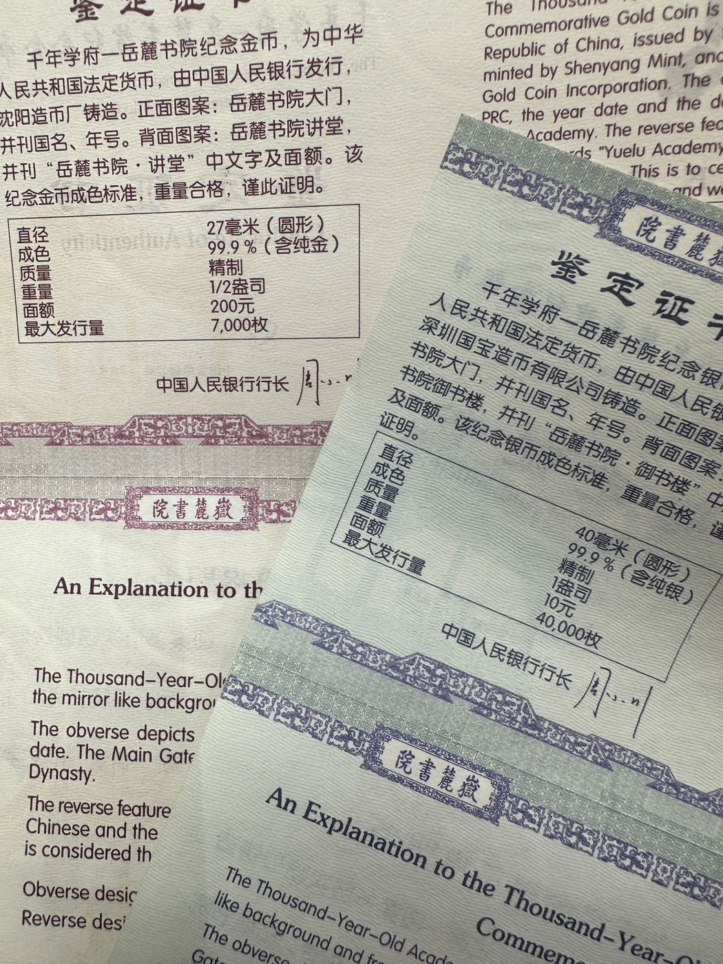 出,06年岳麓书院千年学府金银一套