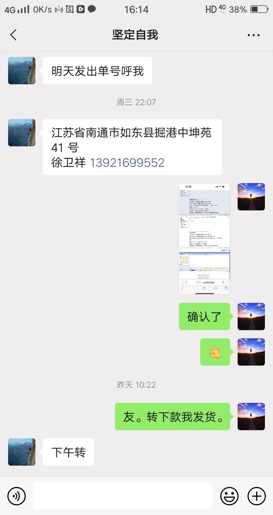 前天晚上10点多买家(徐卫祥)确认一组标十,第二天上午我和买家说转款我发货。买家说下午转,说好,下午3点多我联系他转款,我好发货。买家说钱在他媳妇那里晚上转我,让我先发货。我说晚上几点,他说6点前。然后我给快递打电话把货发出去了。我把货物单号给了买家。晚上我让买家转我货钱,买家又说出信息转我。今天有信息我要买家转我钱,结果她和我耍无赖,说货收到了再给我。一共几百块钱的东西和我耍起臭无赖了,此买家不讲诚信,有行骗意图。请版主处理此事!
