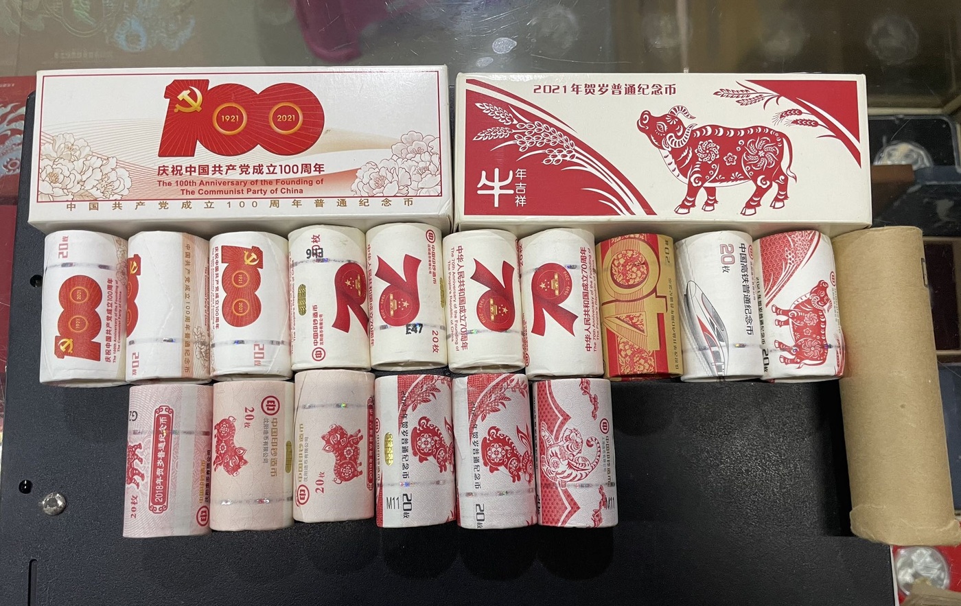 出建党百年10.4(1盒+3卷),建国70周年10.5(4卷),二牛11.4(1盒+1卷),改革开放40周年10.1(1卷),高铁10.1(1卷),和五5.5(1卷,卷头微裂),二狗10.5(1卷),二猪11.5(2卷),二兔13(2卷),二虎16(1卷)