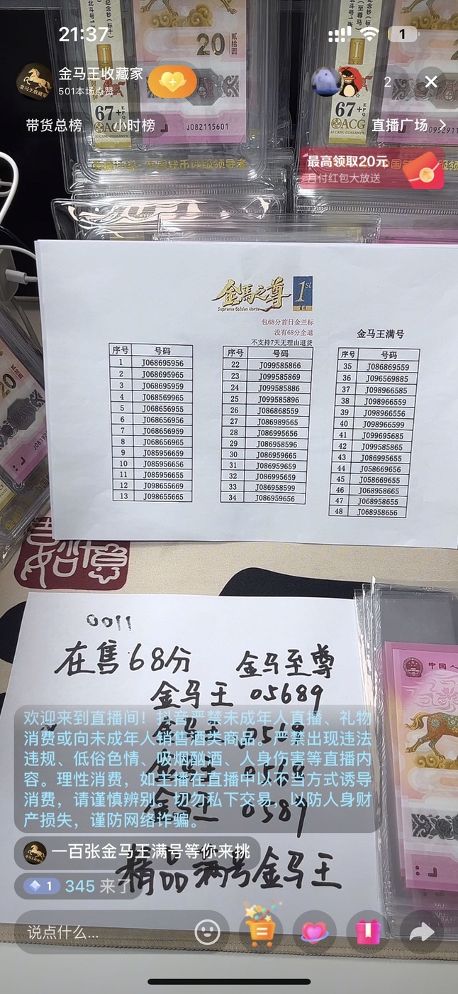 出马钞金马王68分 满号