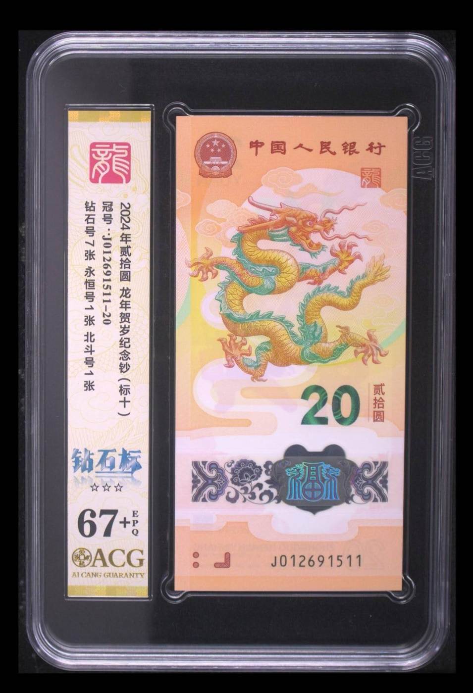龙钞J012691511满号标十67+,顺丰包邮