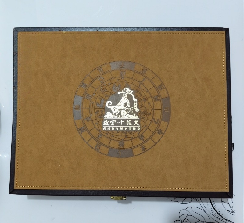 → 21.5出故宫十犬图银镶金纪念章+公司章共250克银3克金