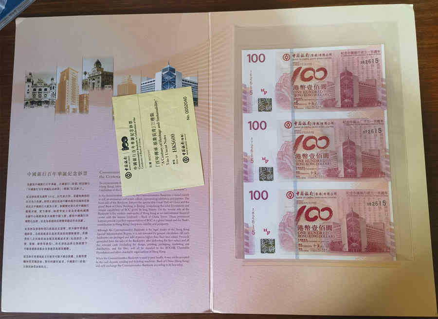 → 售中银百年三连1套