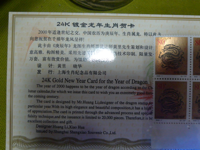 → 1550元出售精美贺卡99100EE首发冠钞一张带2000年龙双联邮票。