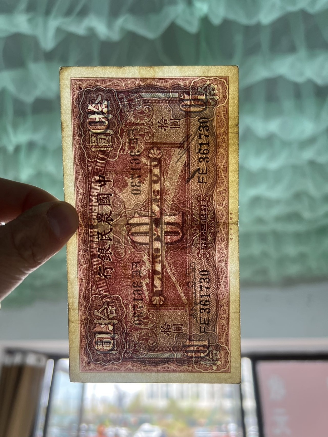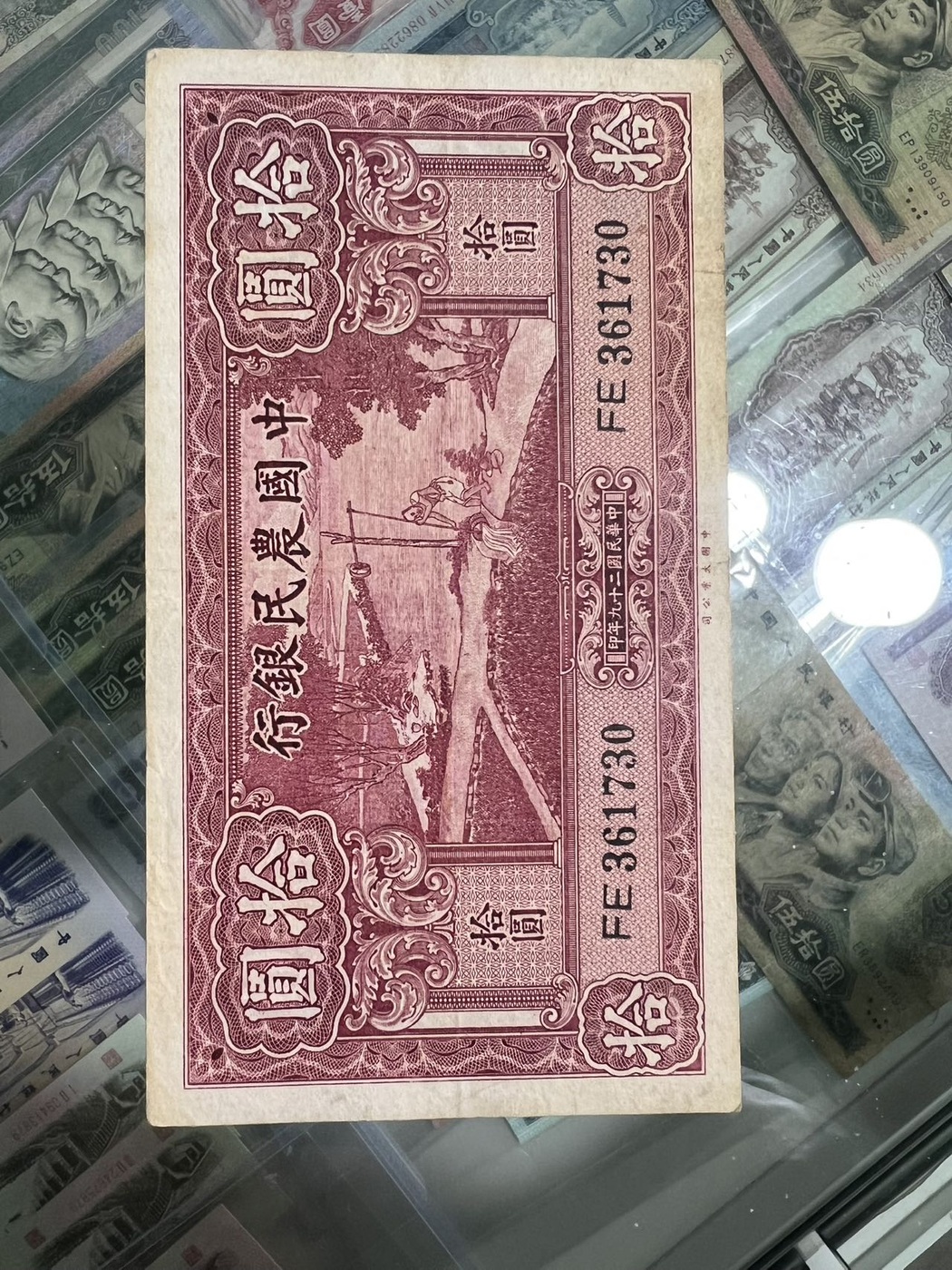 中国农民银行拾圆,原票硬板,凹凸强烈,板子好,颜色漂亮