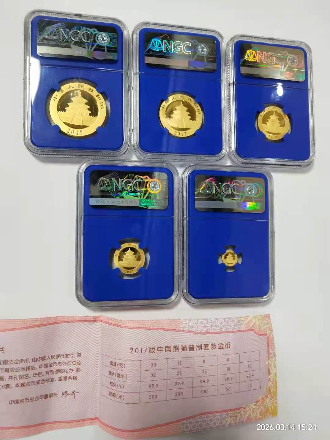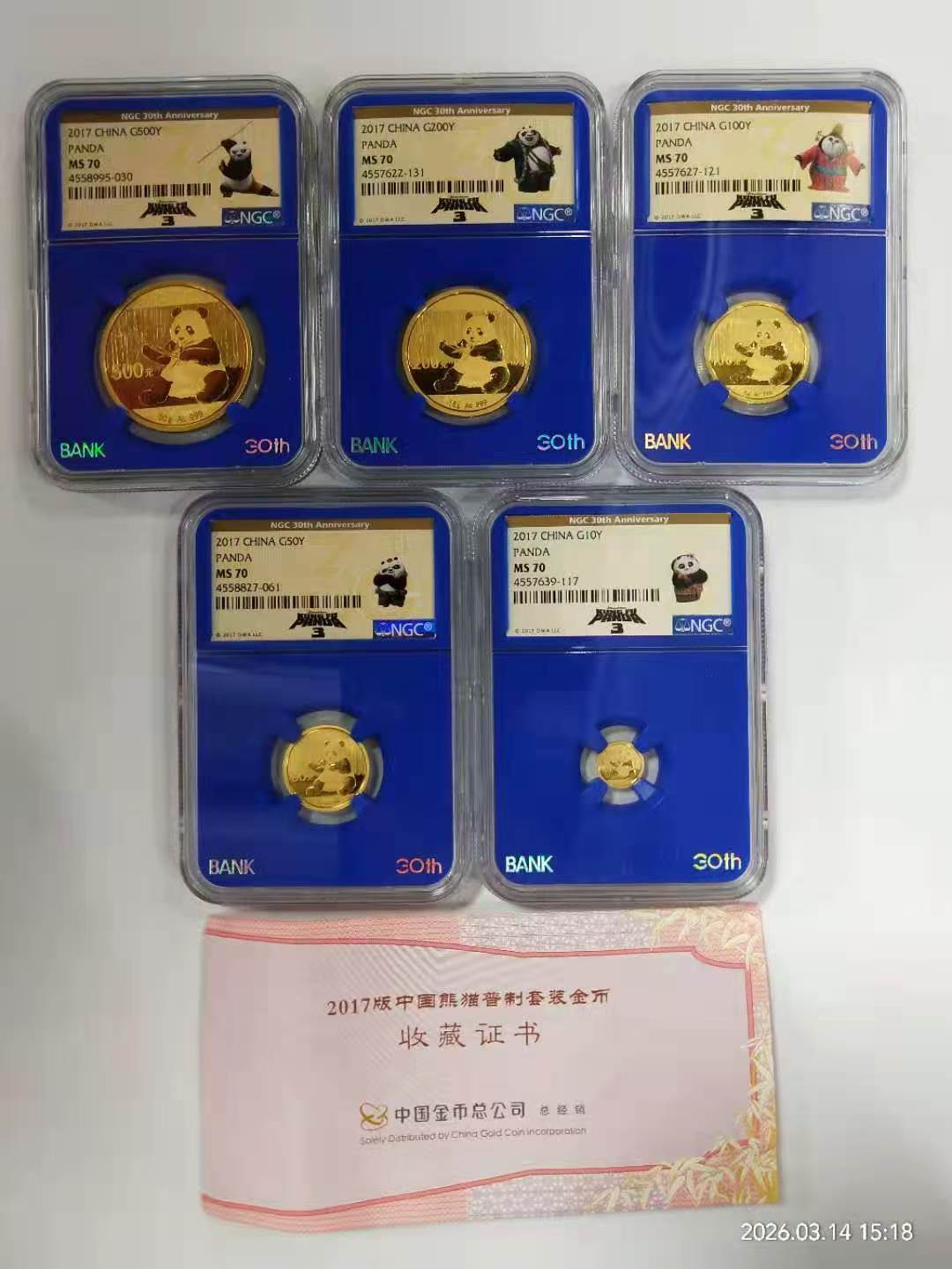 → 2017金套猫(NGC70蓝盒1145元/克)