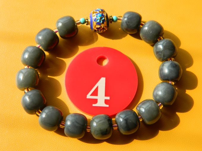 4号,和田玉手串,乌鸡料,直径11,重36,价350.