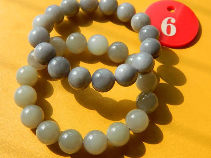 1号,和田玉且末料手串,乳白色微黄,有的带糖,直径10,重32,价220。