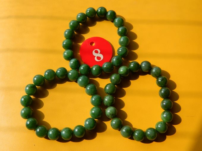 8号,和田玉碧玉手串,老坑俄碧菠菜绿,直径11.8,重45,价720.