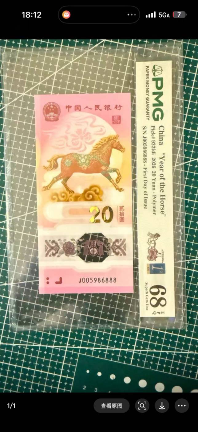 代友出售马钞金马王尾888PMG68分一张,5800元三包带回家