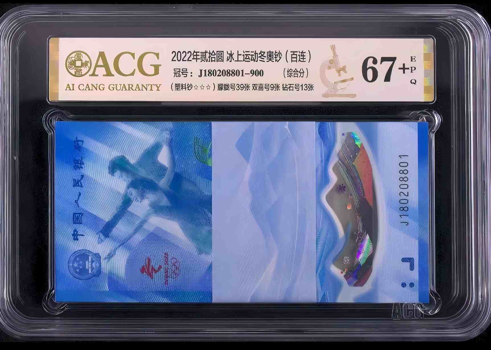 出冬奥纪念钞一刀爱藏67+分,0128组合:(J180208801)