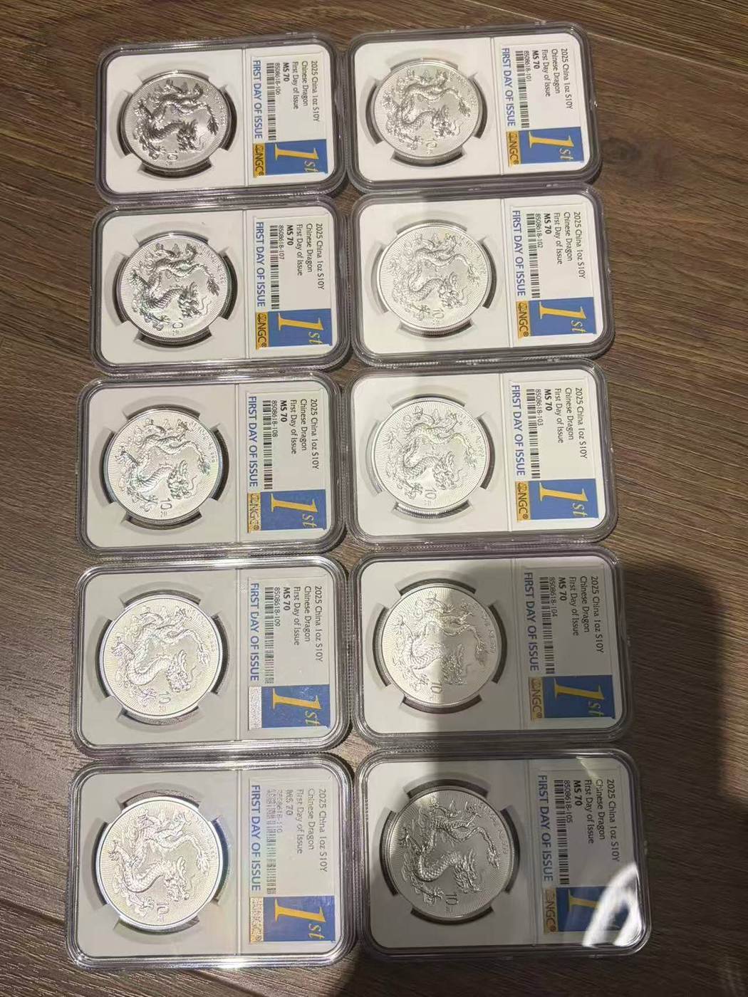 中国龙银币首日金兰标,70分标十,金马标十