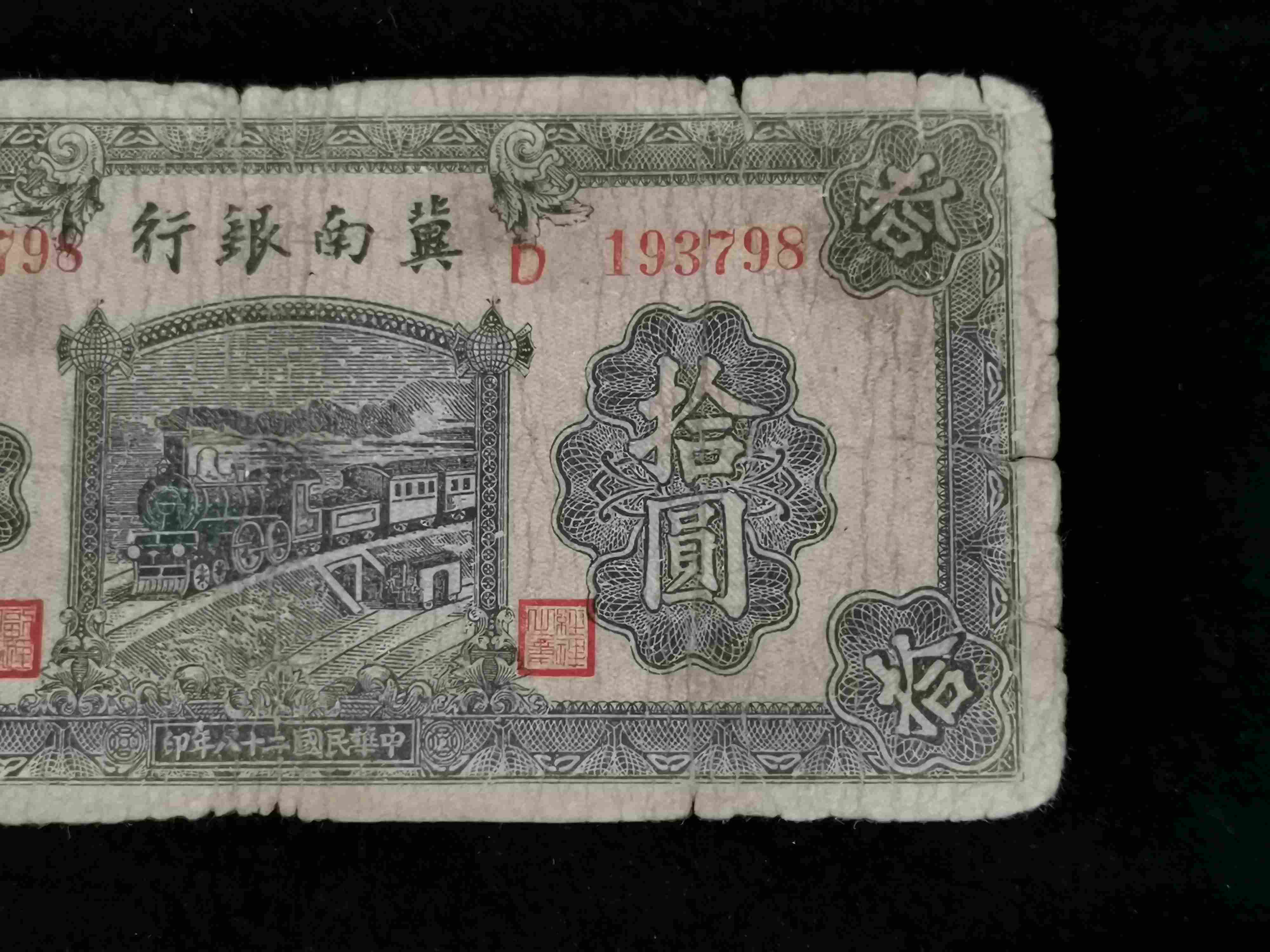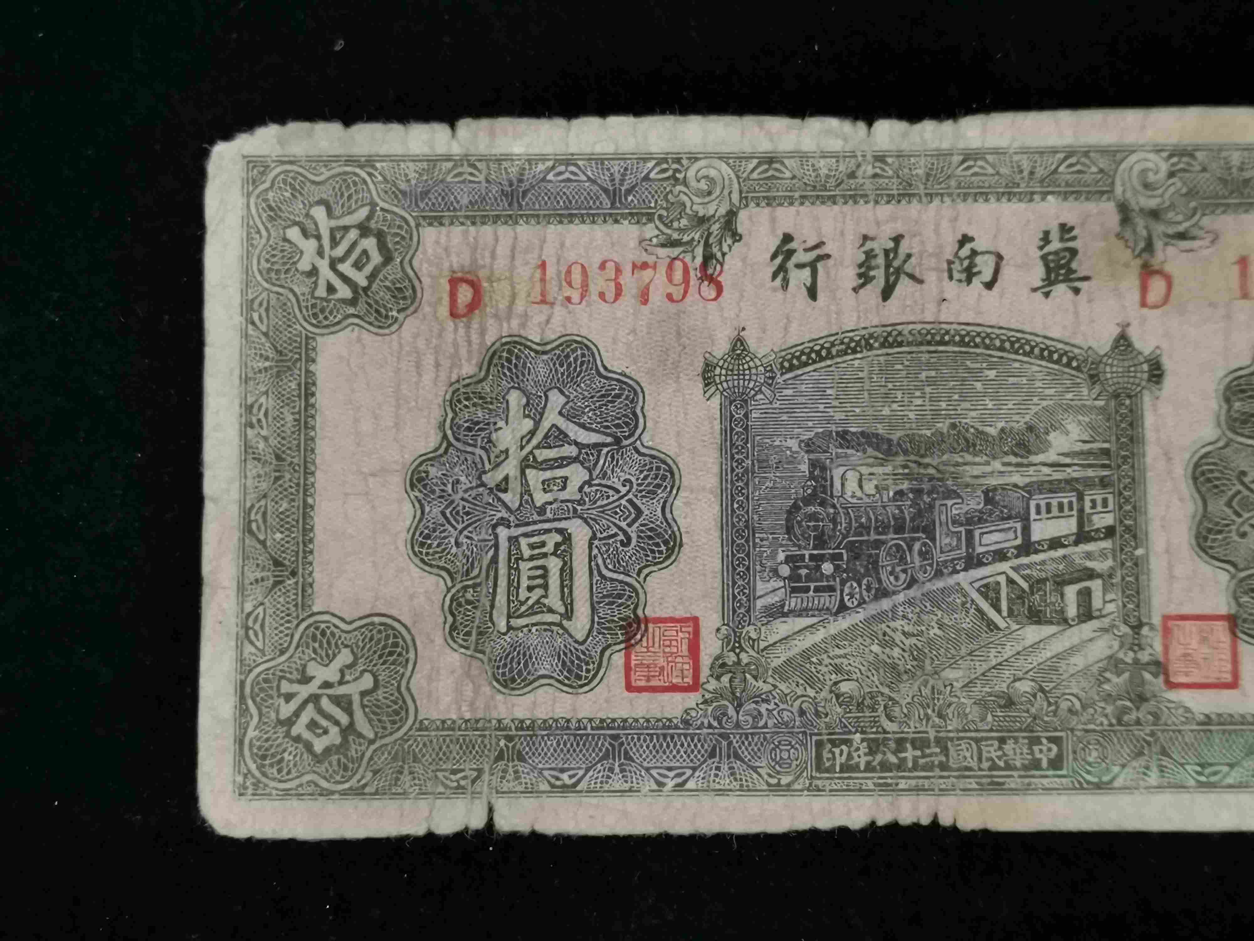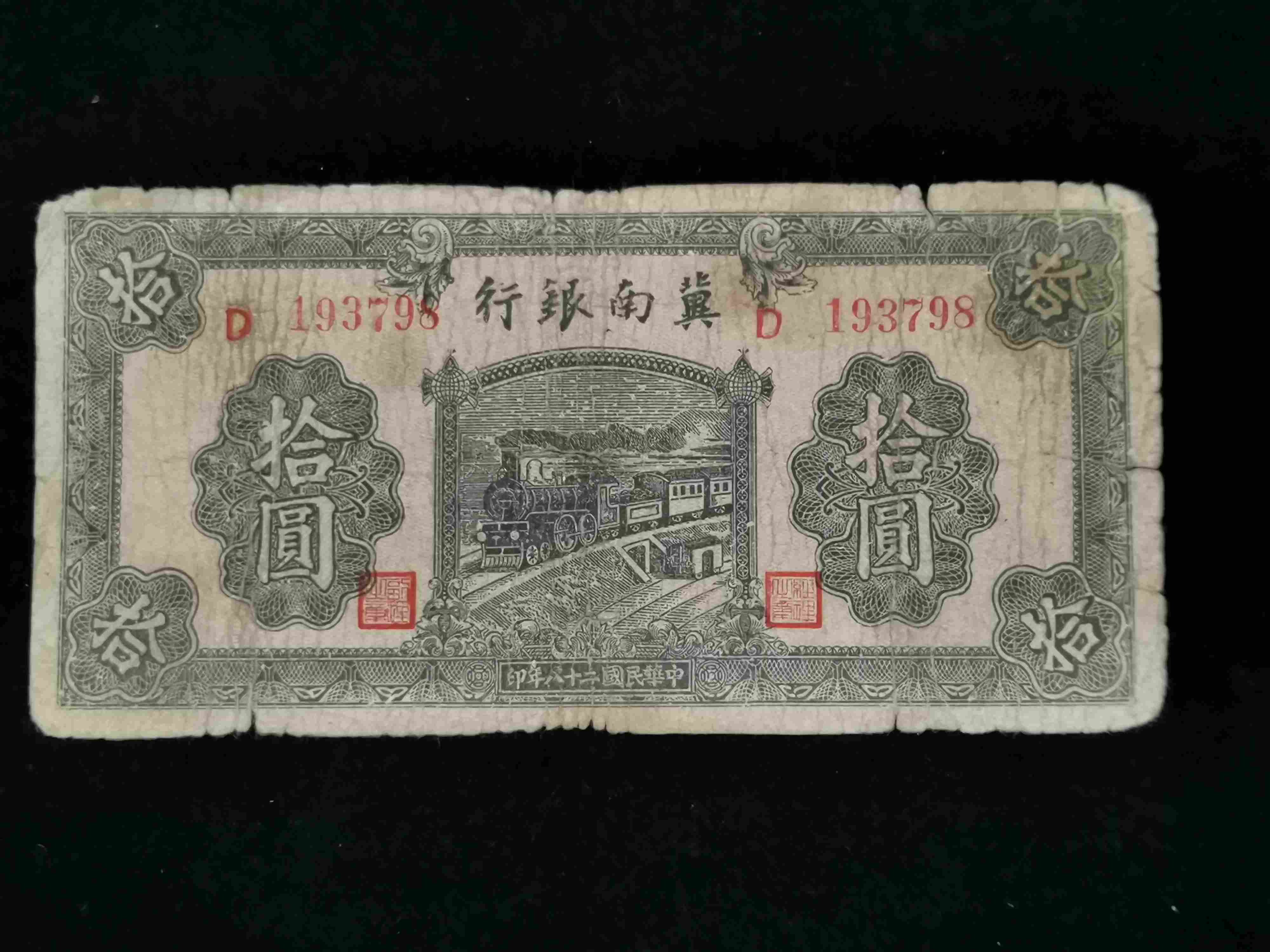 民国二十八年解放区冀南银行拾圆(冠号D193798)