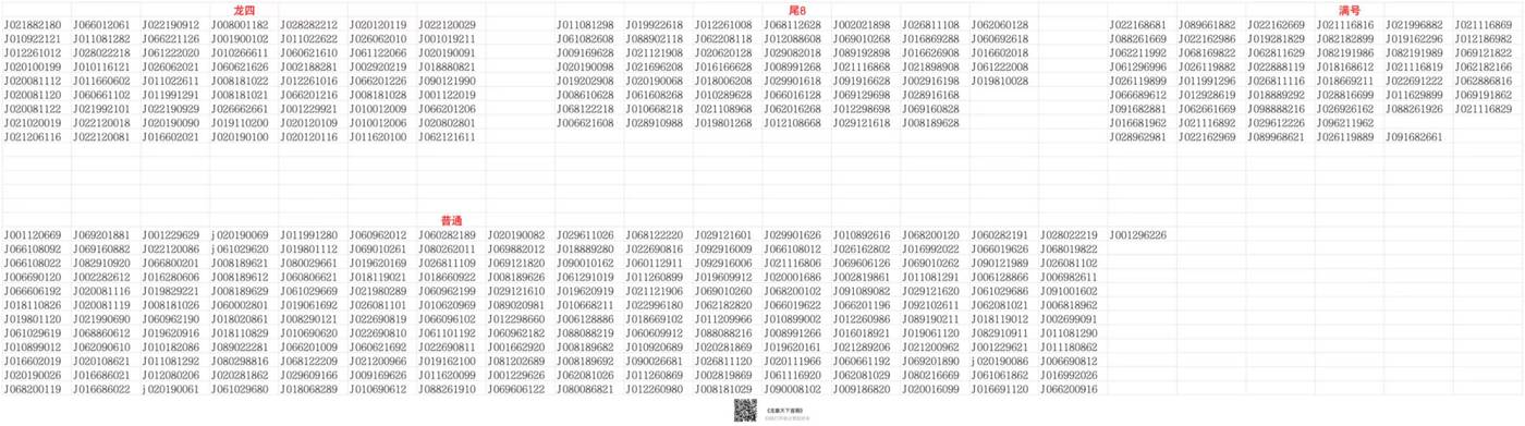 收以下表内号码