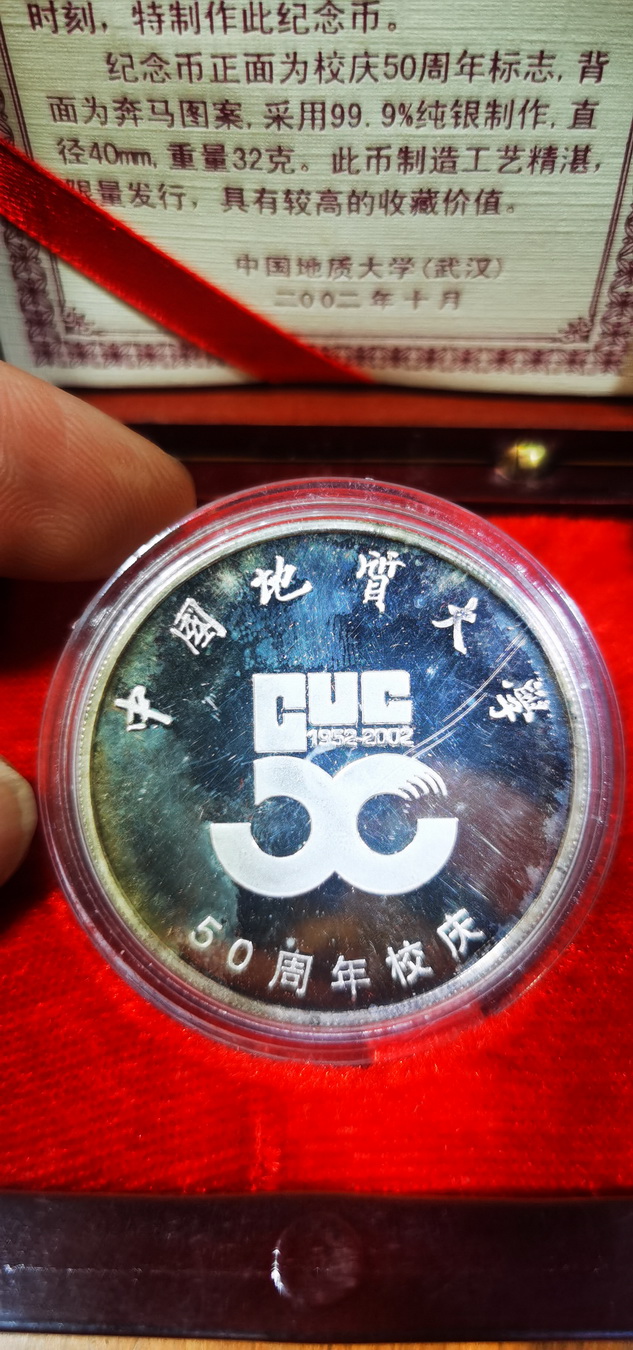 20元/克卖一枚地质大学建校50周年银章