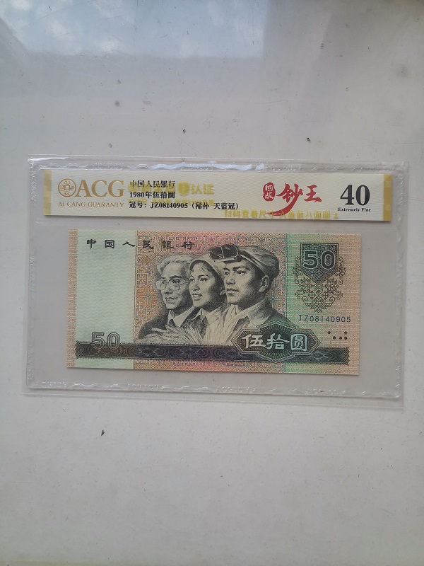 四版币王8050共发行24个冠号,其细分品种天蓝冠只有CP、CQ、CR、CS、CT、CU和CW437以前的号段共计6个半冠号,补号为天蓝冠的只存在于JZ089以前的号段中,属于可遇而不可求的稀缺品种。另外,这张补号的长度超过标准尺寸1.18mm(扫码可见),仅售1500元。评级币以分为准,售出不退不议。