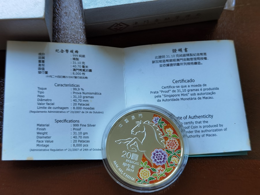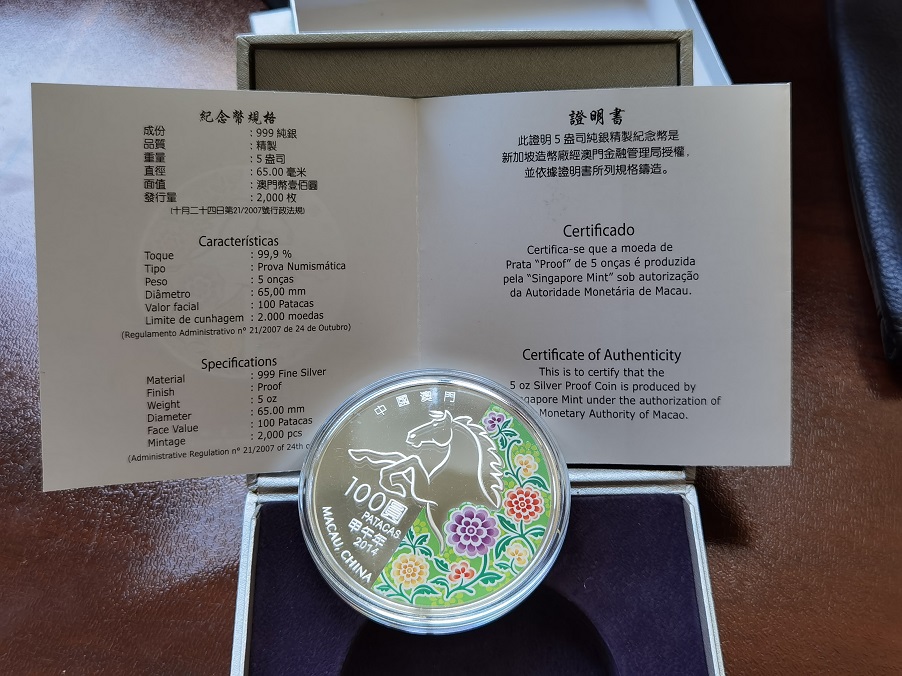 → 澳门2014年 马年 一盎司和五盎司彩银一对