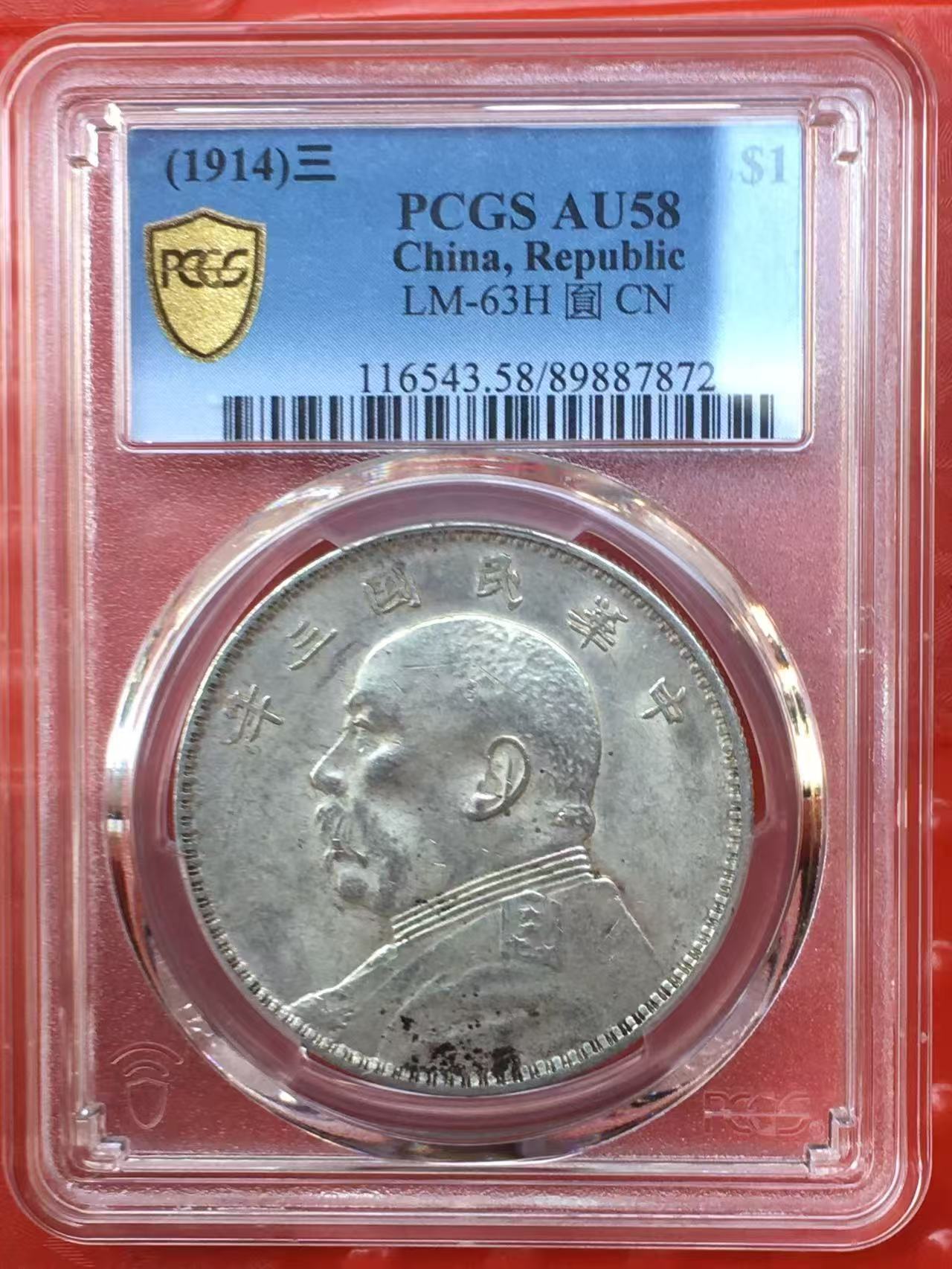 → 原味带原光,PCGSAU58大头三年三角元