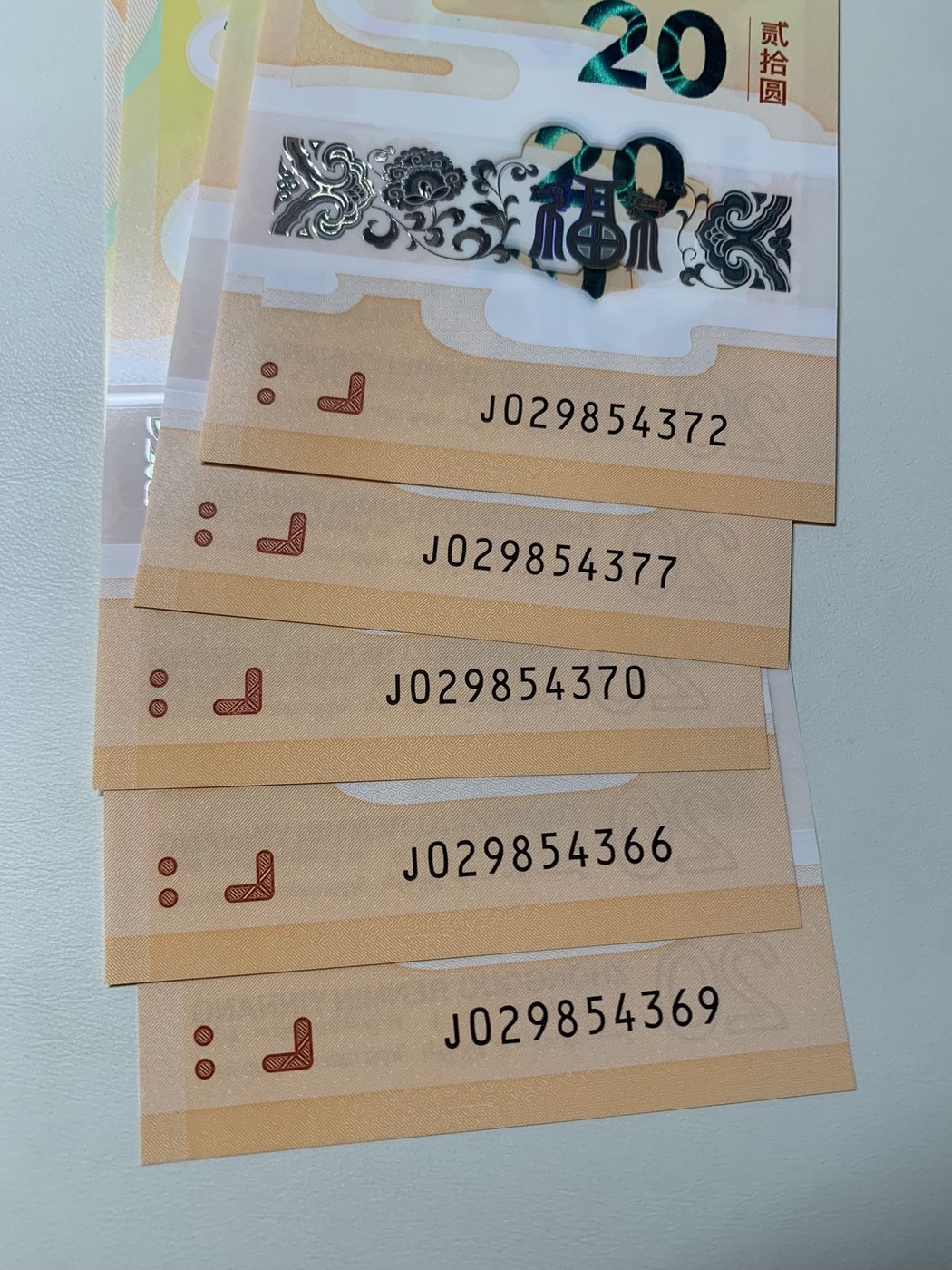 右下角“20”荧光透印,每张都带“985”,裸全品相。