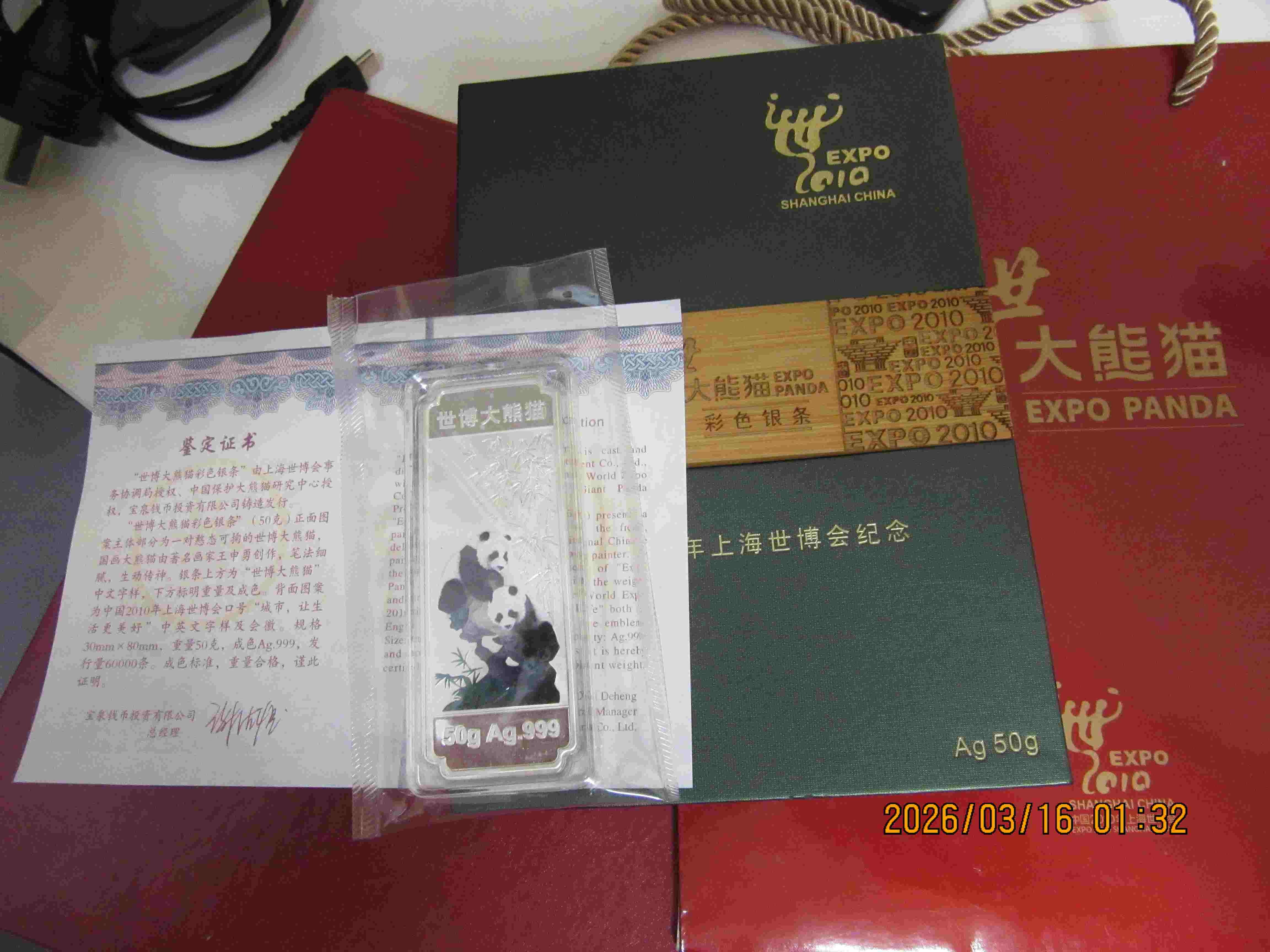 → 售宝泉公司上海世博大熊猫银章50克