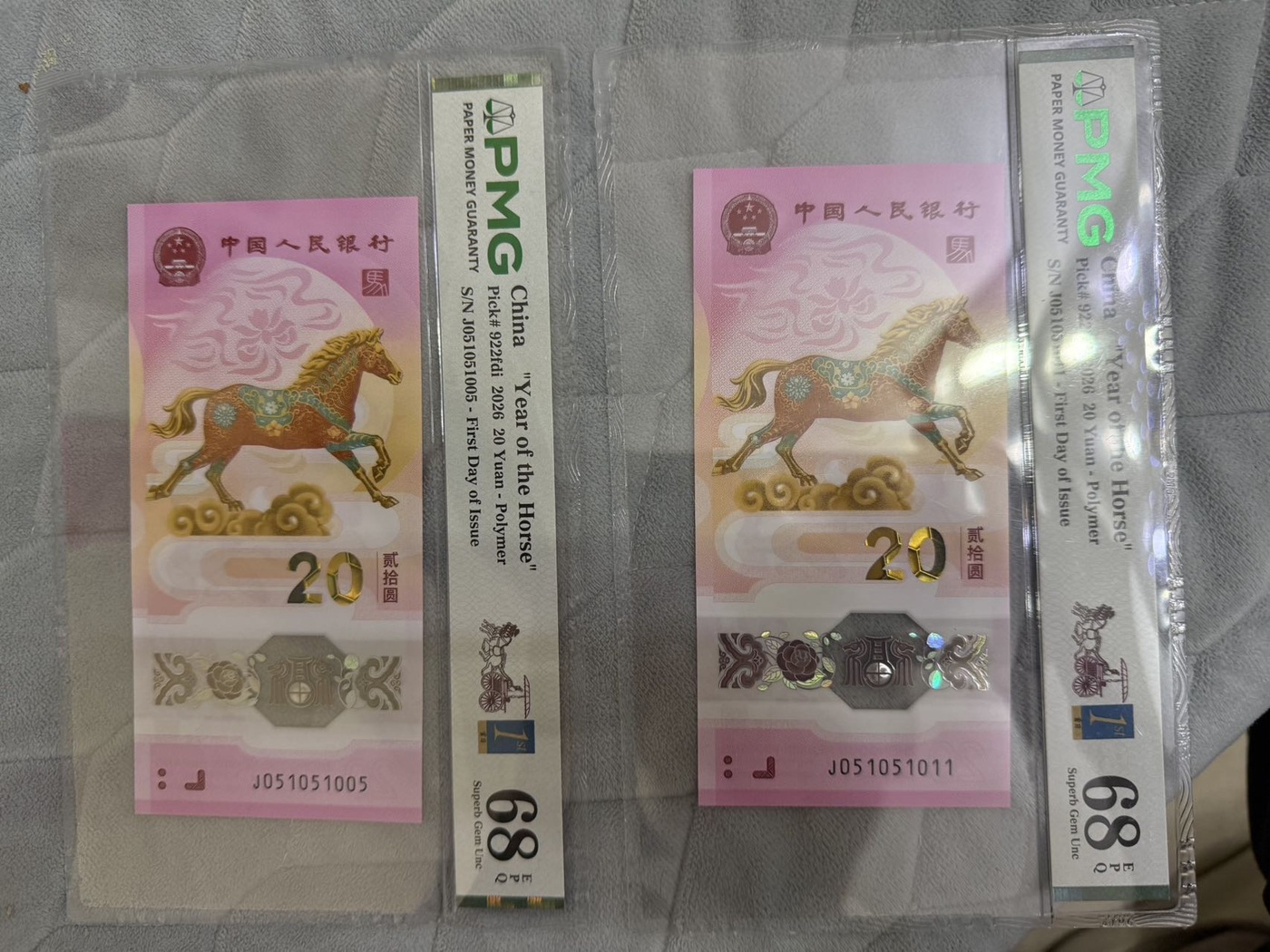 售马钞马三小循环015 pmg首日金兰68分单张 一马当先 天子一号标
