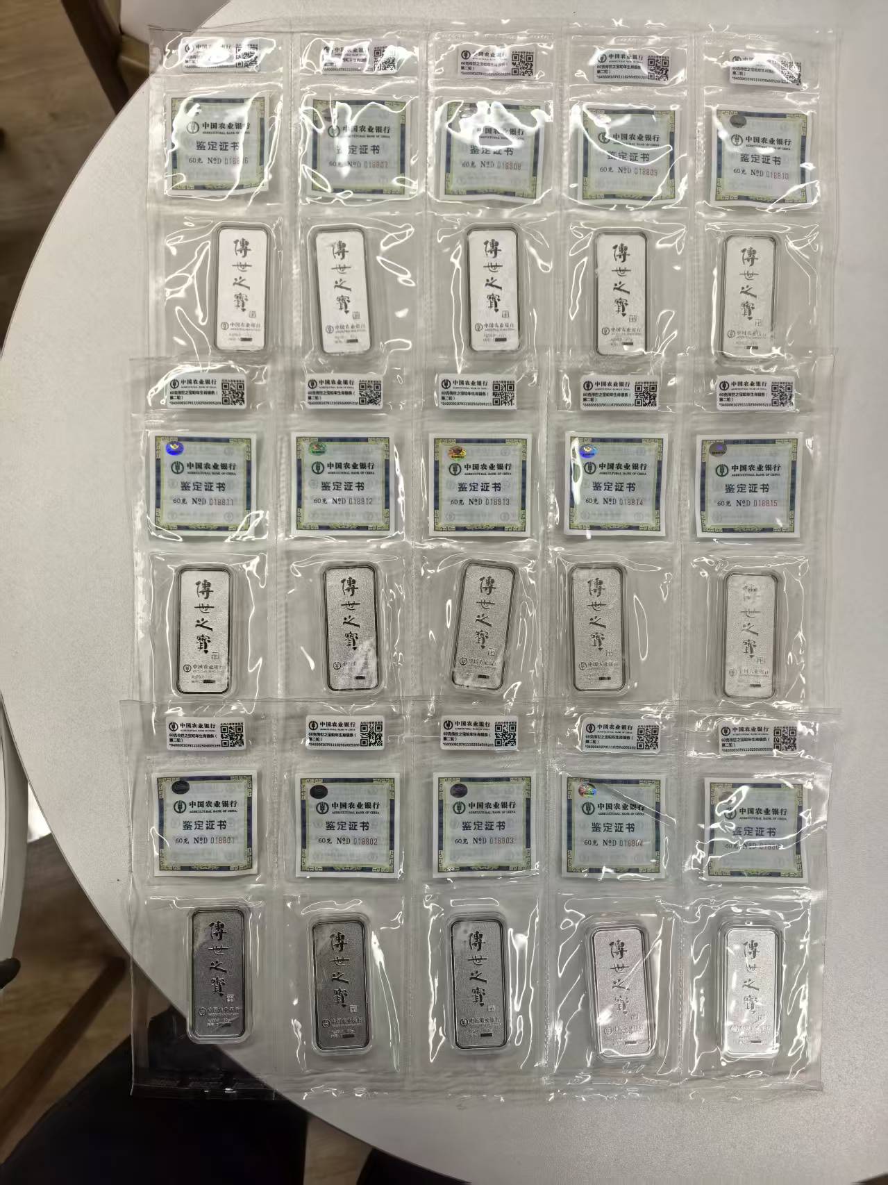 → 23.2出农行蛇年生肖银条60克82根,先款,联系确认为准