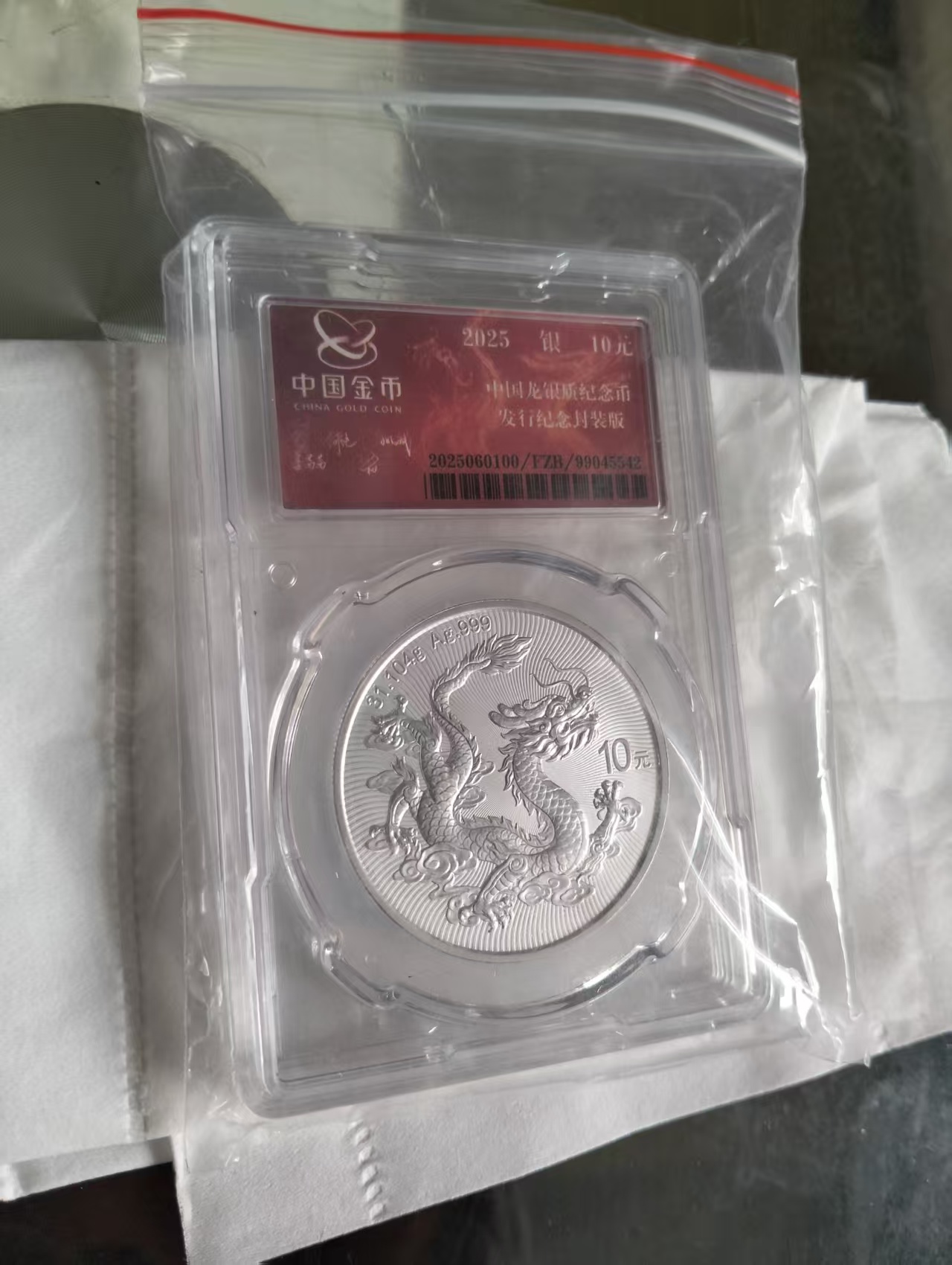 出售25年中国龙银币封装版号码00054一枚,小司令号共99枚,盒子和证书齐全,售1.65万,电联确认.包京东快递。