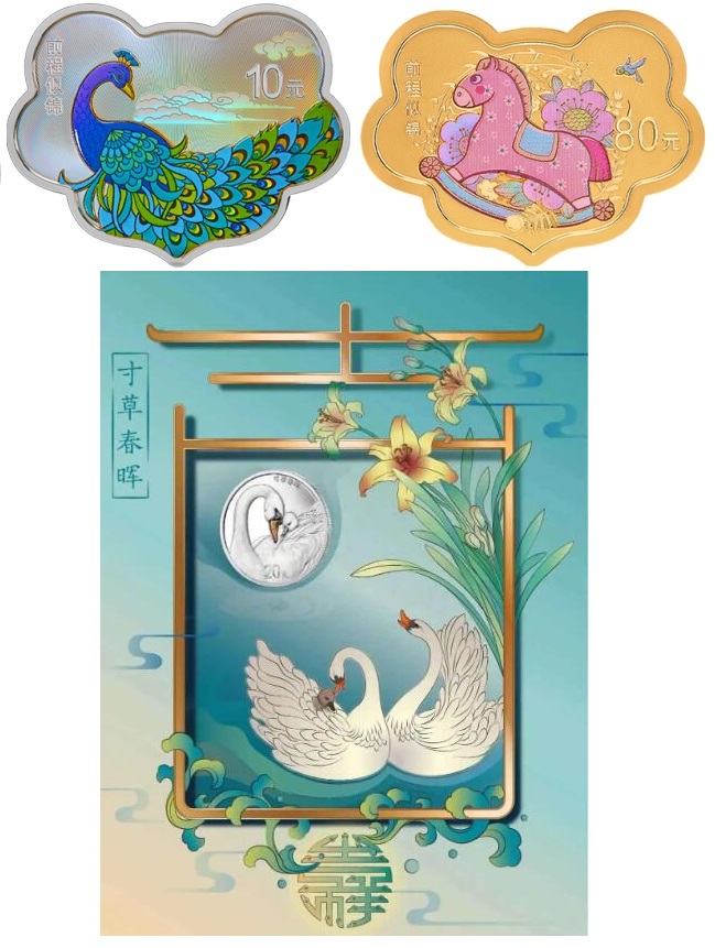 23年前程似锦金银币,如意型5克金+30克银,号码01296,龙珠如意号,龙年生日号12年龙年9月6日,龙概念火起,7600元;