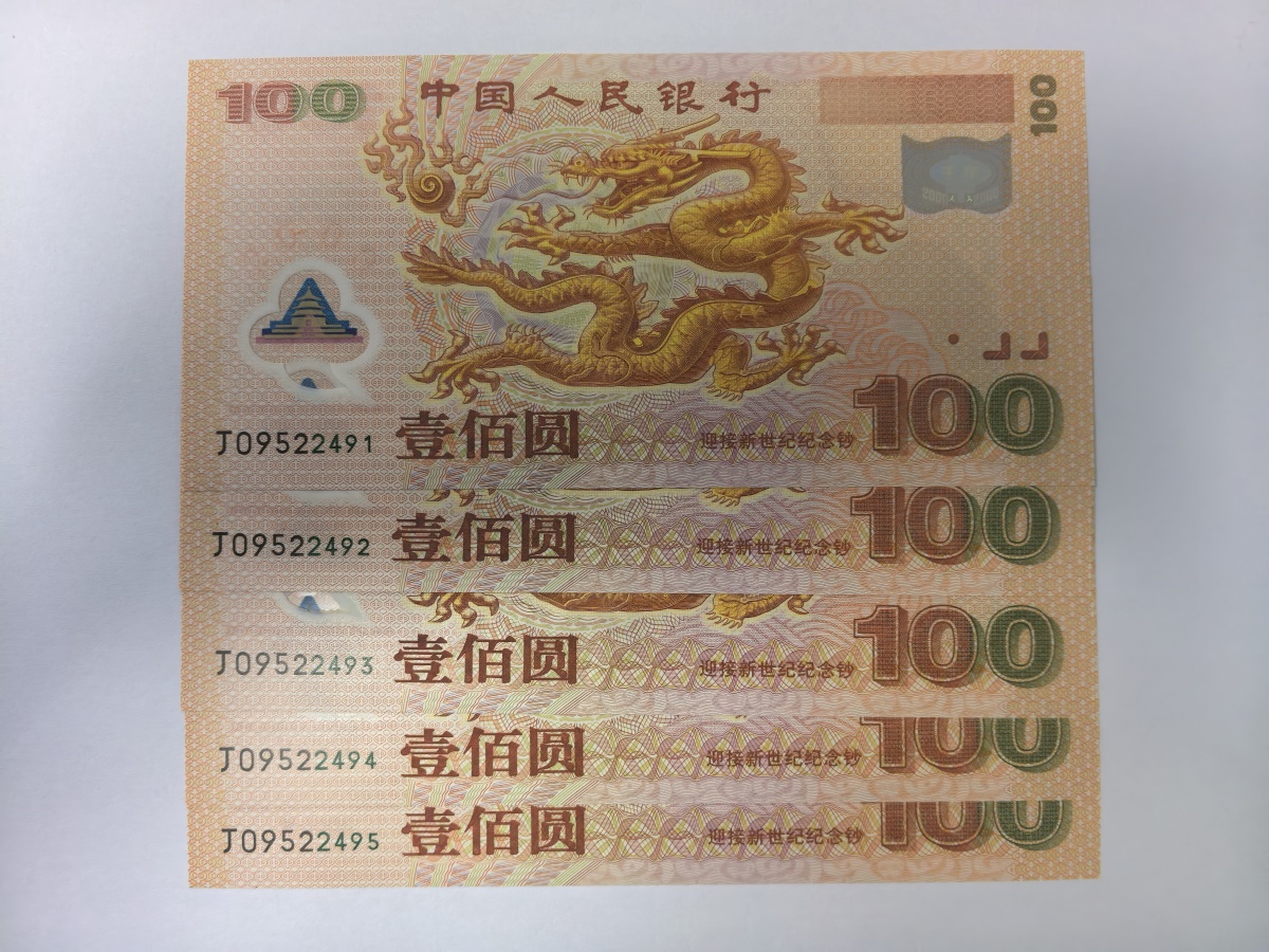 出全品5连号世纪龙钞