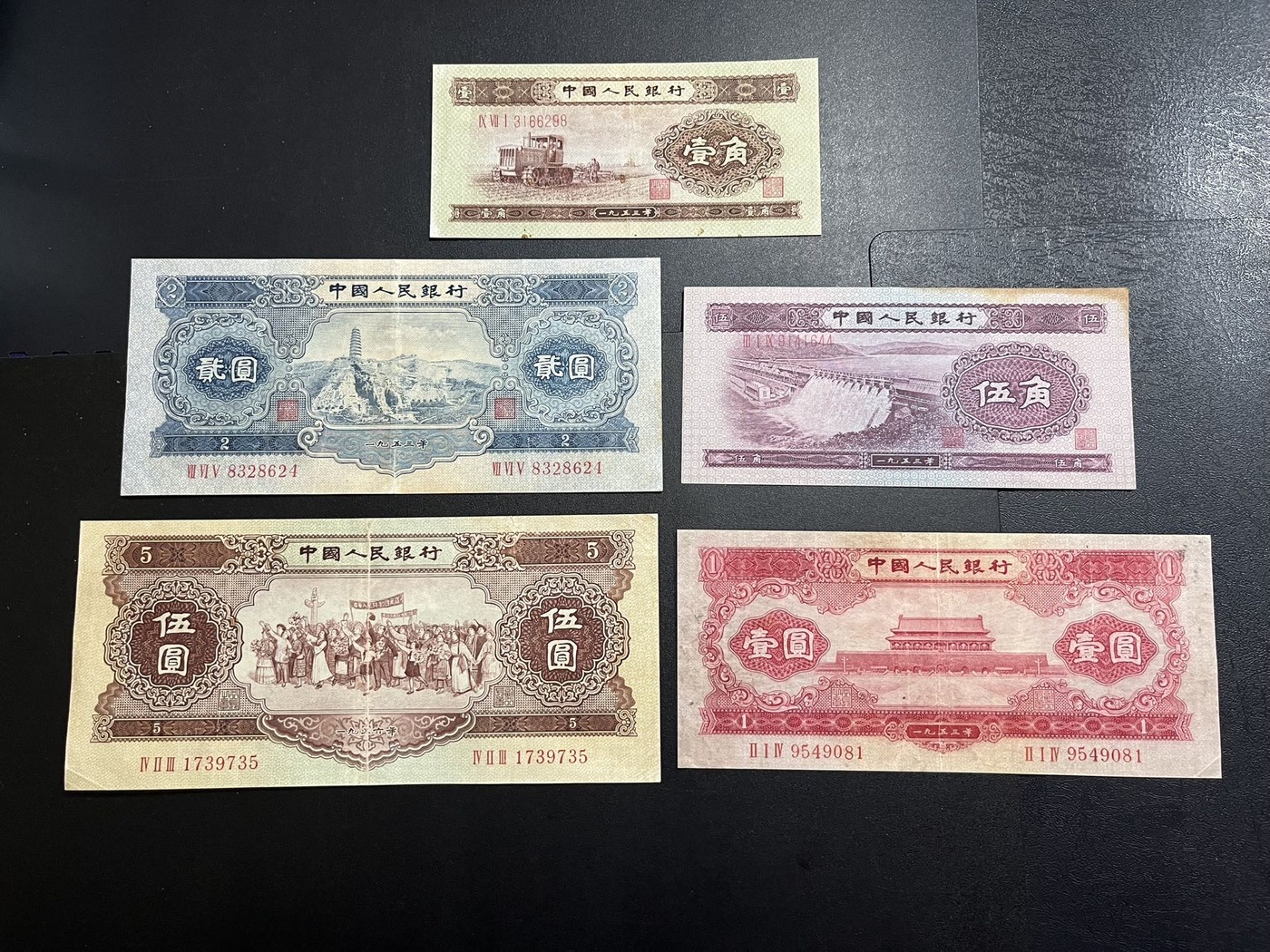 二版五张,好品如图,黄一角,水坝,宝塔山,红一,黄五,通走惠售1800元包邮,代友出售,联系确认18800292096