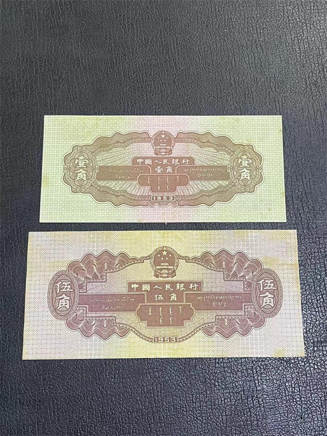 二版币。水坝5角/黄一角 各一张 原票 有黄