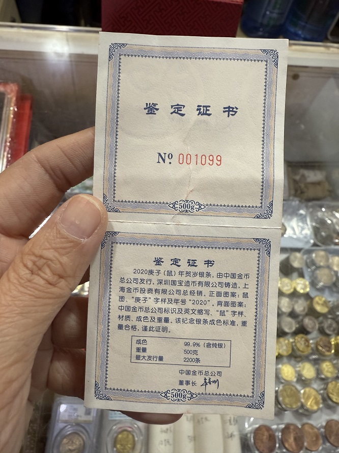 → 售金总2020年鼠年银条500克。