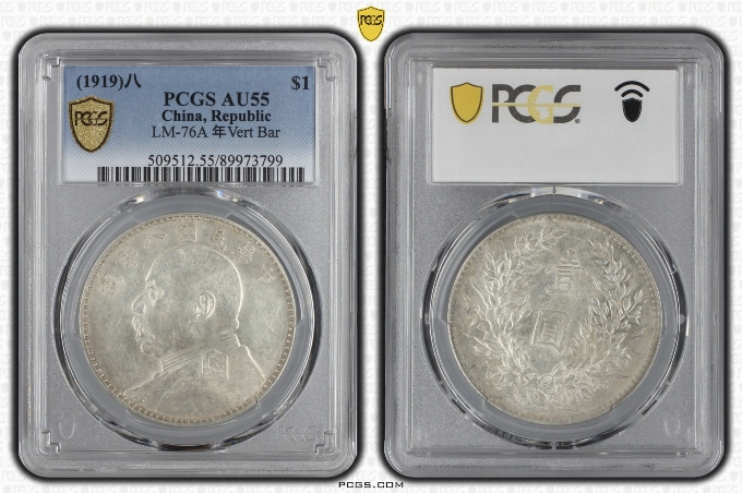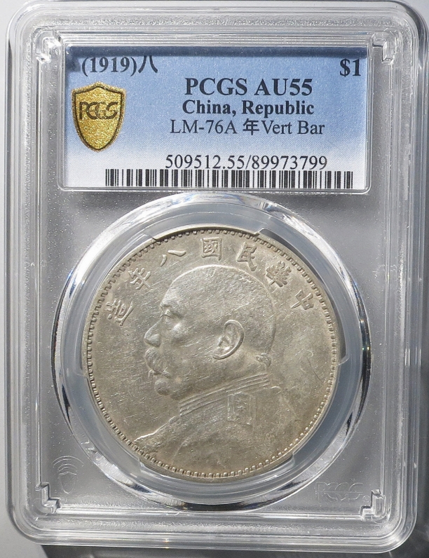 → 大名誉品:PCGS-AU大头八年竖点年 带原光 售价68000元