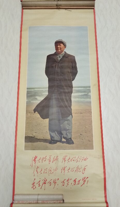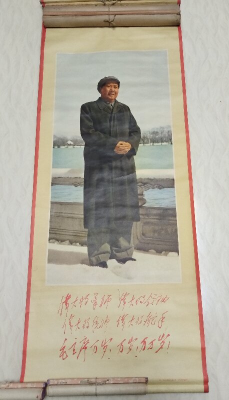 毛主席像卷轴2幅,诗词大小各2幅,瓷像章1枚,九大照片画像3张,合售66元包邮。