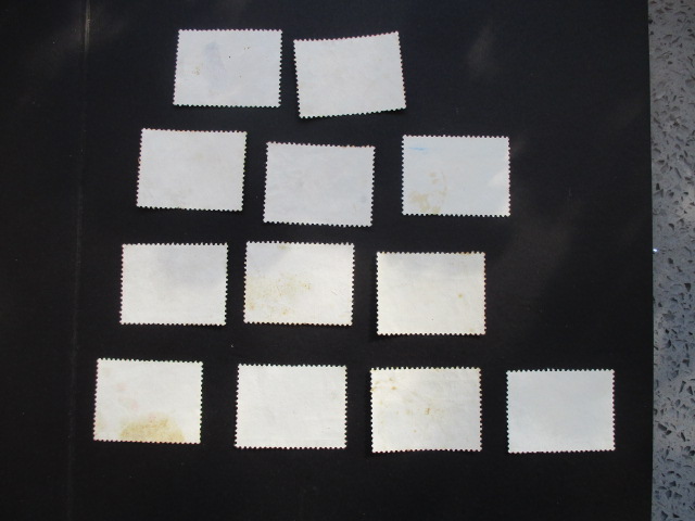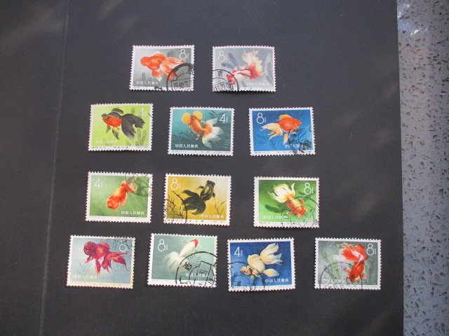 一。金鱼:图示上面两枚有薄。第二排3枚各有1.2齿弱。其它7枚上品(--12旅大戳)。一套260元。