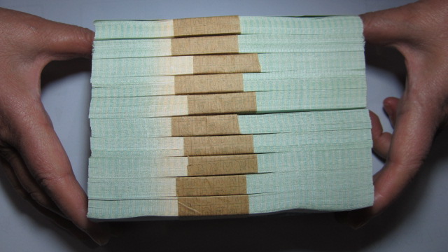 原捆包品如图无人为,包无油,无黄、无斑。0001这刀有3张补号,前10张有倒角现象。其它9刀都是百连。