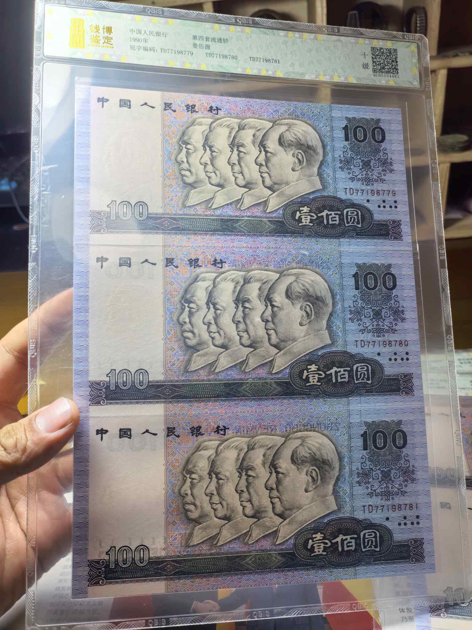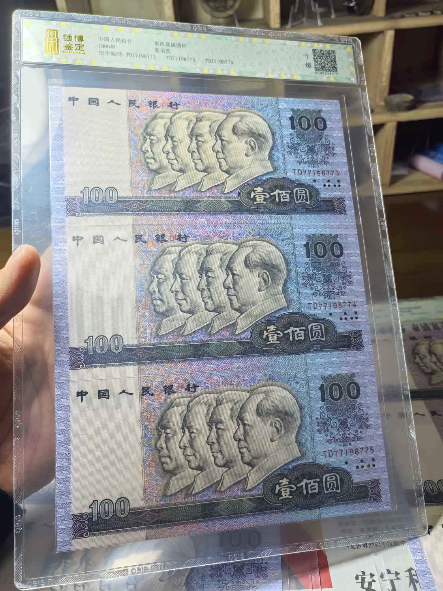 钱博鉴定90100共9连号,含豹子号777,九张合售价1200元