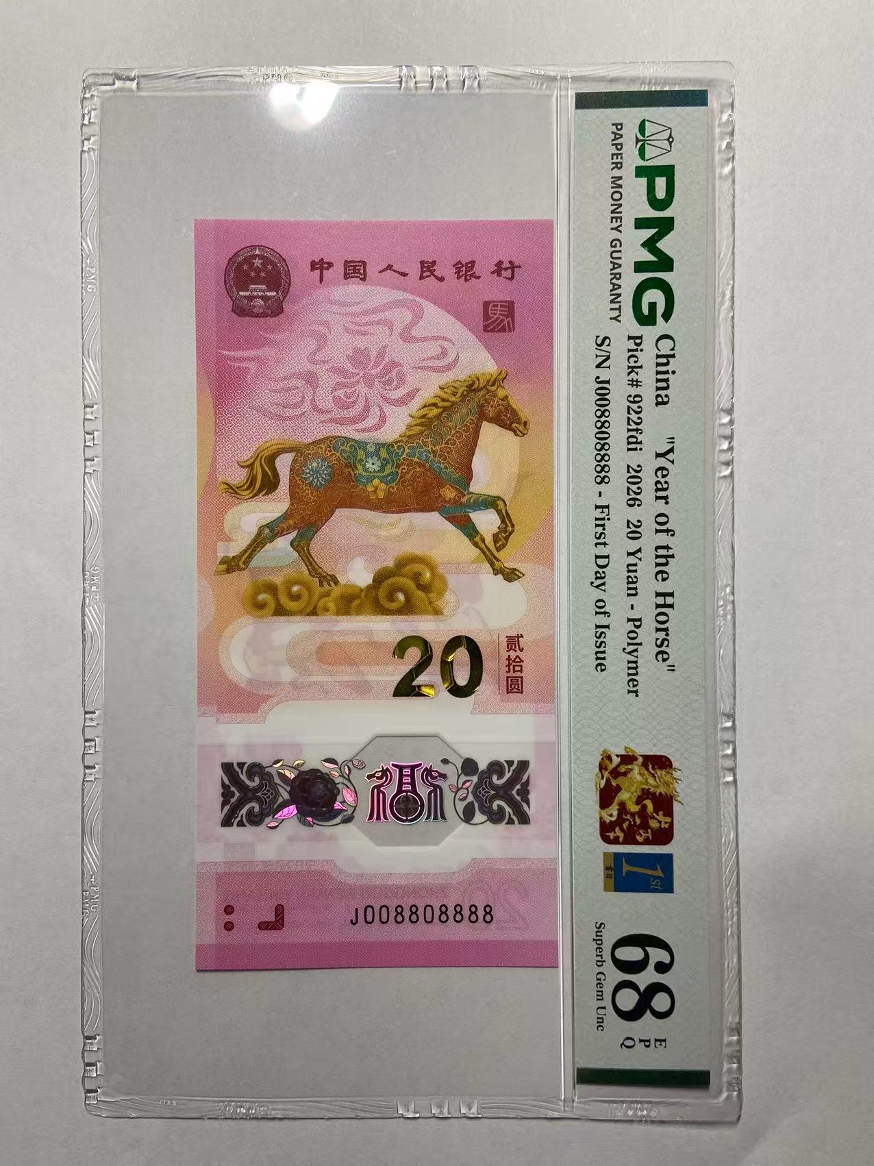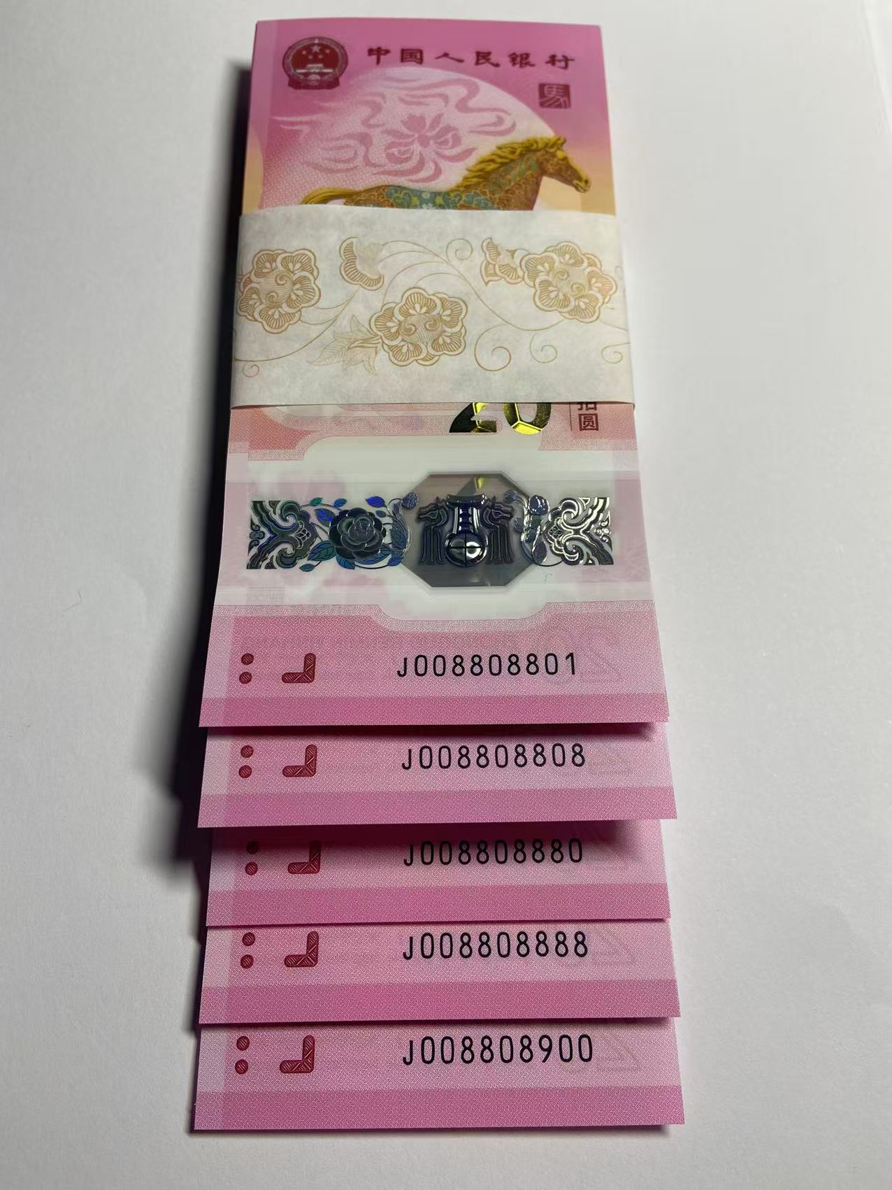 马钞008808888 整刀百连无瑕(当初捆拆),送评PMG单张首日金兰威猛的龙马天下标,成绩优异:70大黑星4张,69分11张,68分73张,67分12张(非主号),此刀内含各种马二,马三,马四等靓号和95至尊等趣味号,一刀在手,管它东西南北风,我自闲庭信步!现货在手,28.88万惠让藏友!