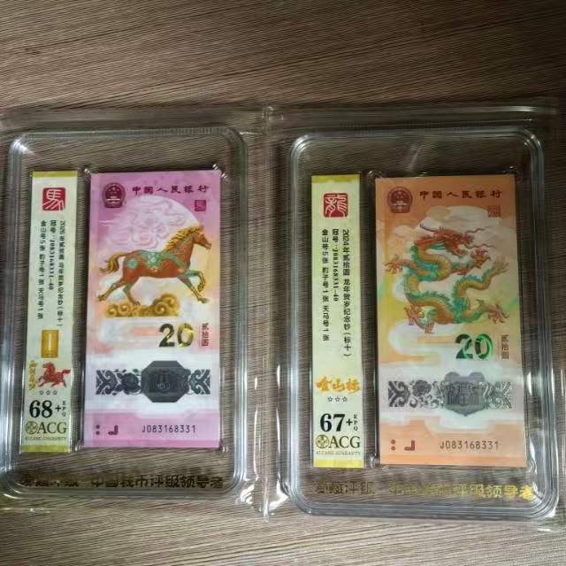 出售爱藏评级龙马精神标十全同号一对(含无47豹子号)龙钞67+。马钞68+全同号一对。如图。售4600包顺丰