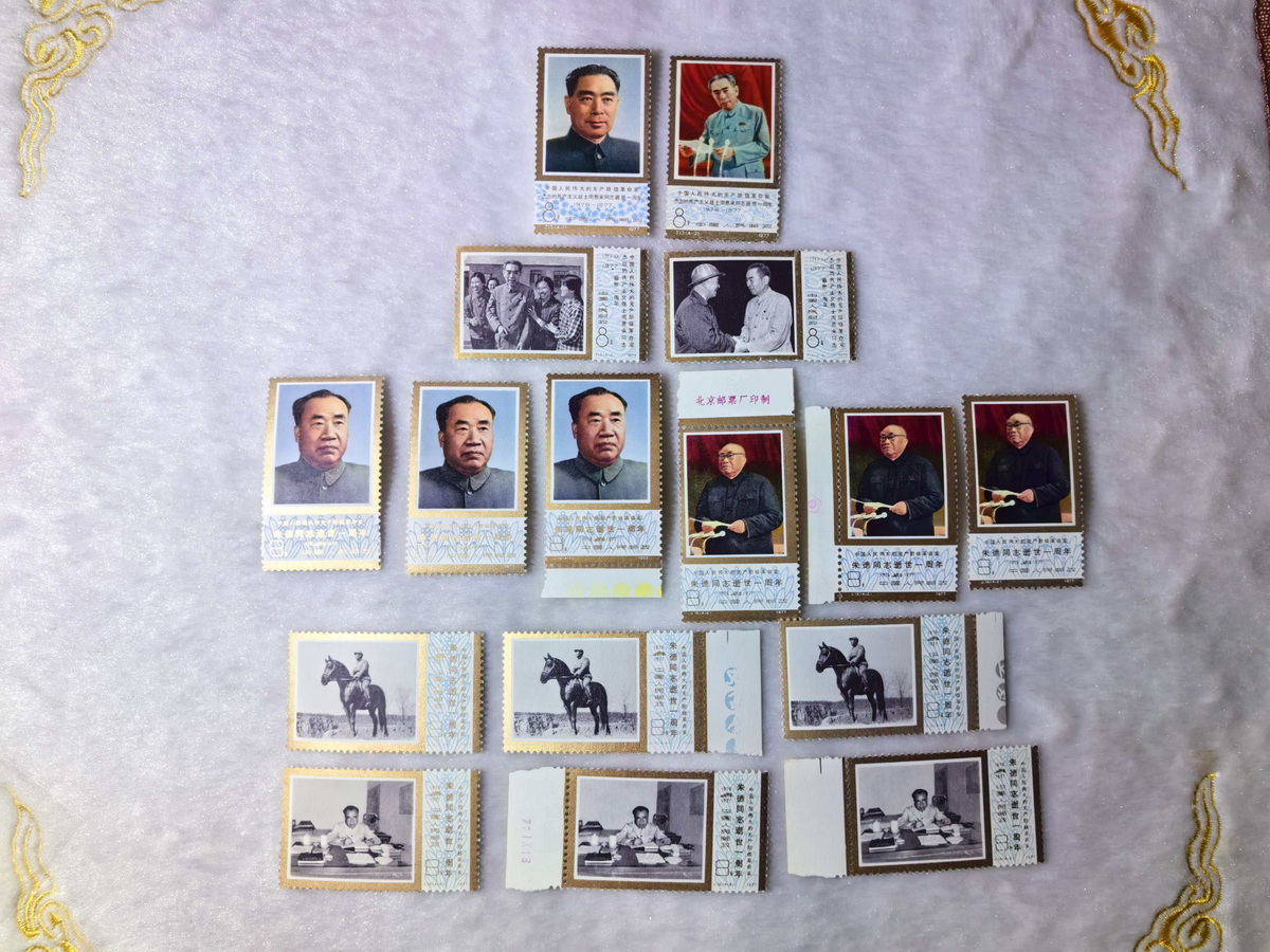 售:J13周恩来1套,45元/套;J19朱德3套,16元/套;T19益鸟3套,有一套有黄,一起走45元;T98吴昌硕厂铭1套,60元/套;T24气象色标一套,50元/套;T37山茶花1套,有黄,75元/套。