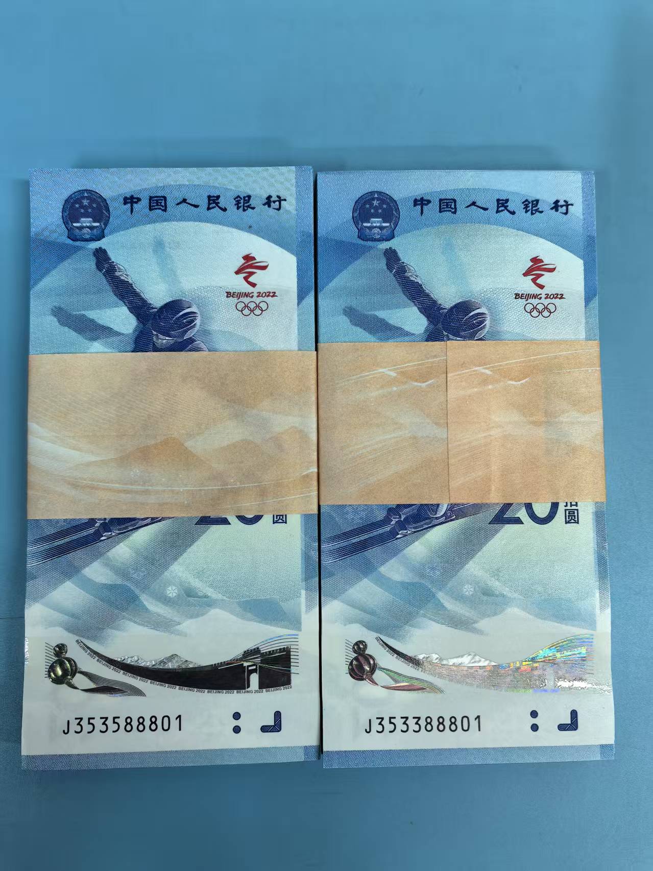 冬奥钞 天马号 冬三 88888 百联 二刀 捆拆全品 无黄无斑 5500元/刀