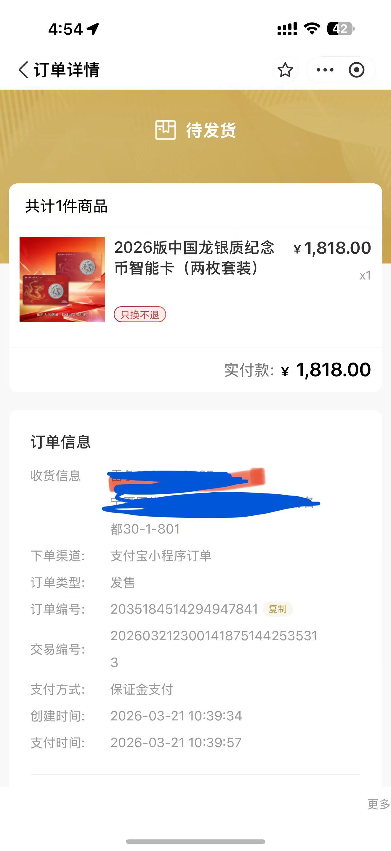 2000出金币云商中签1818智能卡闷包,自己中的 订单1对1,到货后闷包顺丰特快包邮转寄
