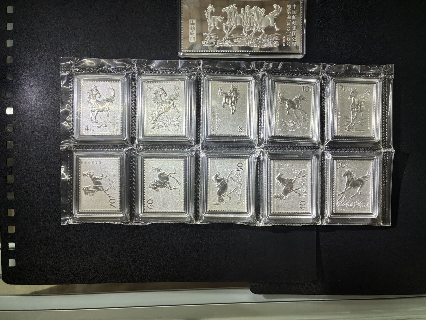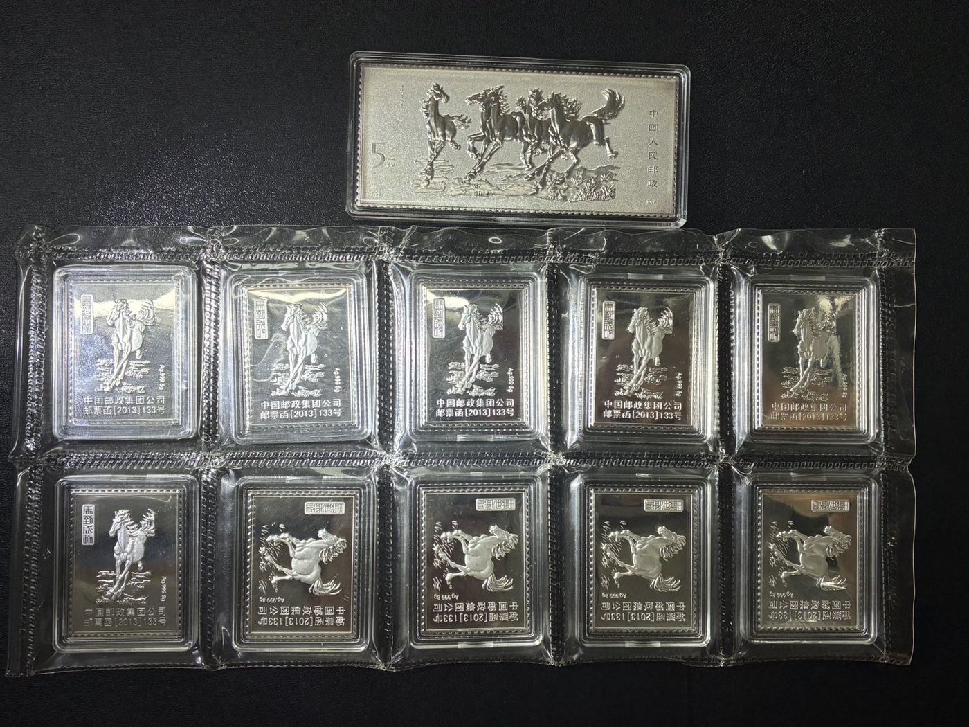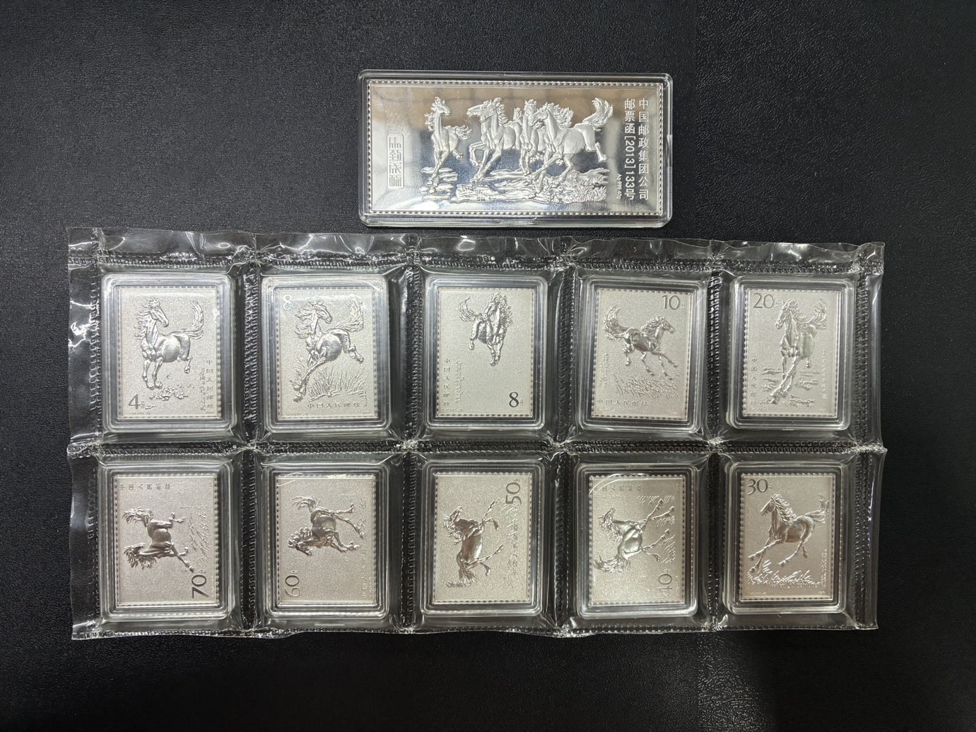 马到功成银币11枚,中国邮政;带原始壳